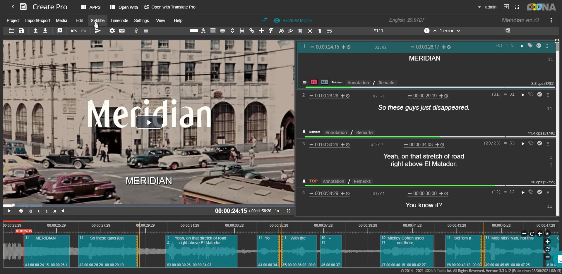 [Subtitle menu – Run Fixes (available in Pro version only)]