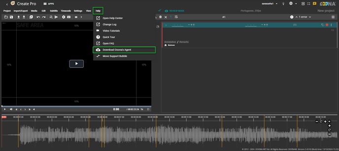 Alternatively, in the Pro option of the Tools you can generate the audio waveform and shot-changes with OOONA Agent. This is recommended for older computers or media files over 1 GB. When opening a video file from your computer, you can turn the ‘Generate with OOONA’s Agent’ toggle on and, if the OOONA Agent is installed in your computer, it will automatically generate audio waveform and shot-change data. Also, it will offer the user to change FPS settings on the project if they do not match the video's FPS.