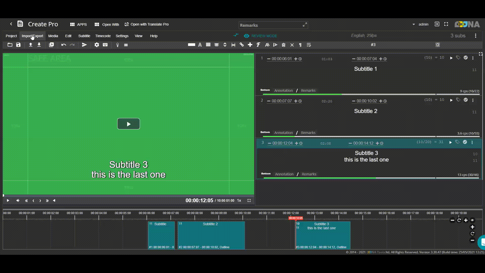 Here is how you can export your source subtitles into Word .docx for offline work, and import it back into OOONA