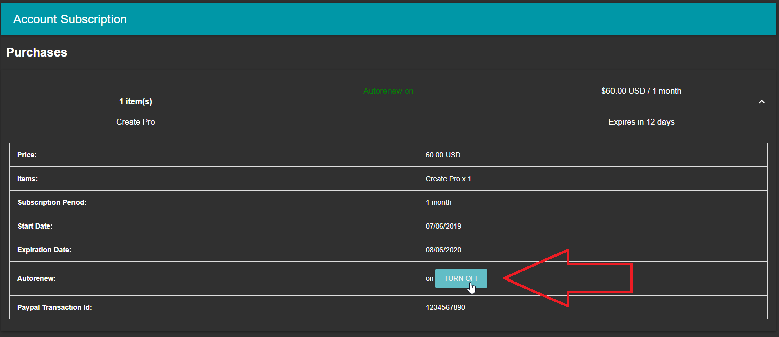 And click on "TURN OFF" if the "Autorenew" is "on" (if it's "off" you don't need to do anything):