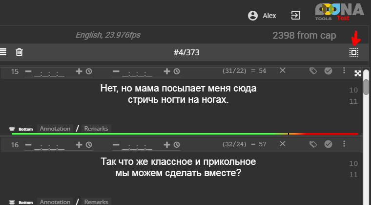 In order to select multiple boxes for editing, click on the small square above the subtitle table. You can either select all, or individual subtitles using checkboxes