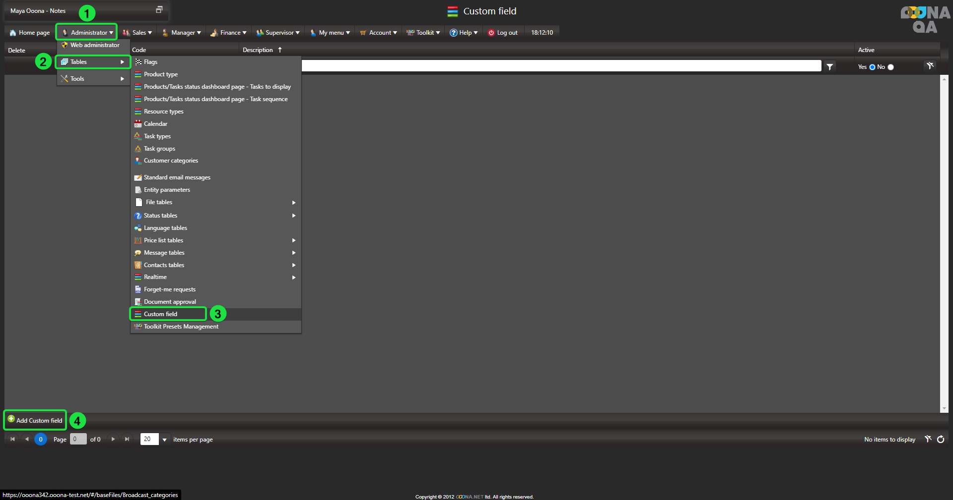 First, you must activate the Custom field functionality in the system.