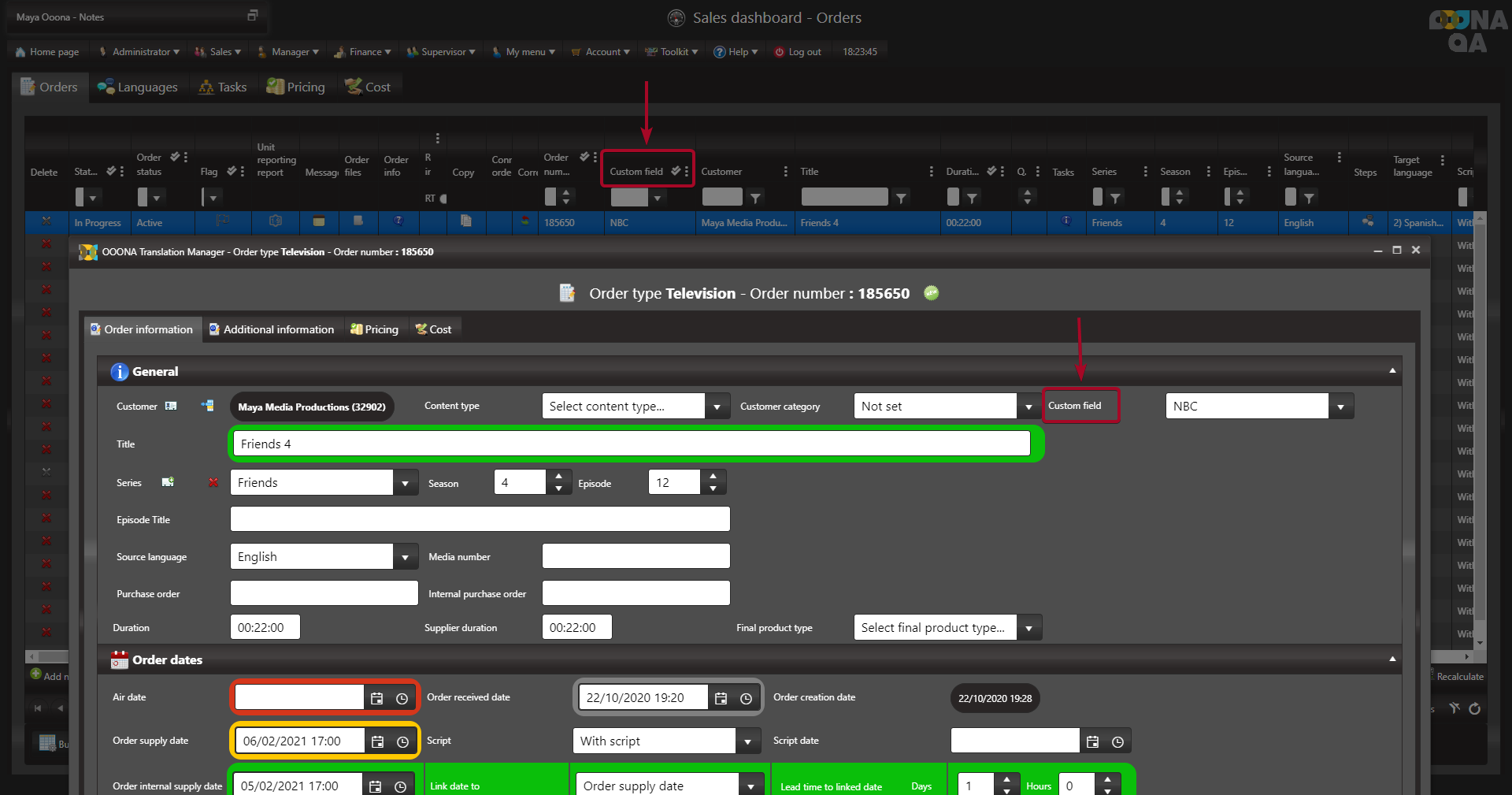 For example, OOONA manager currently doesn’t have a field to enter the “Network” value in. If the “Network” value is required you can use the Custom field for this purpose.