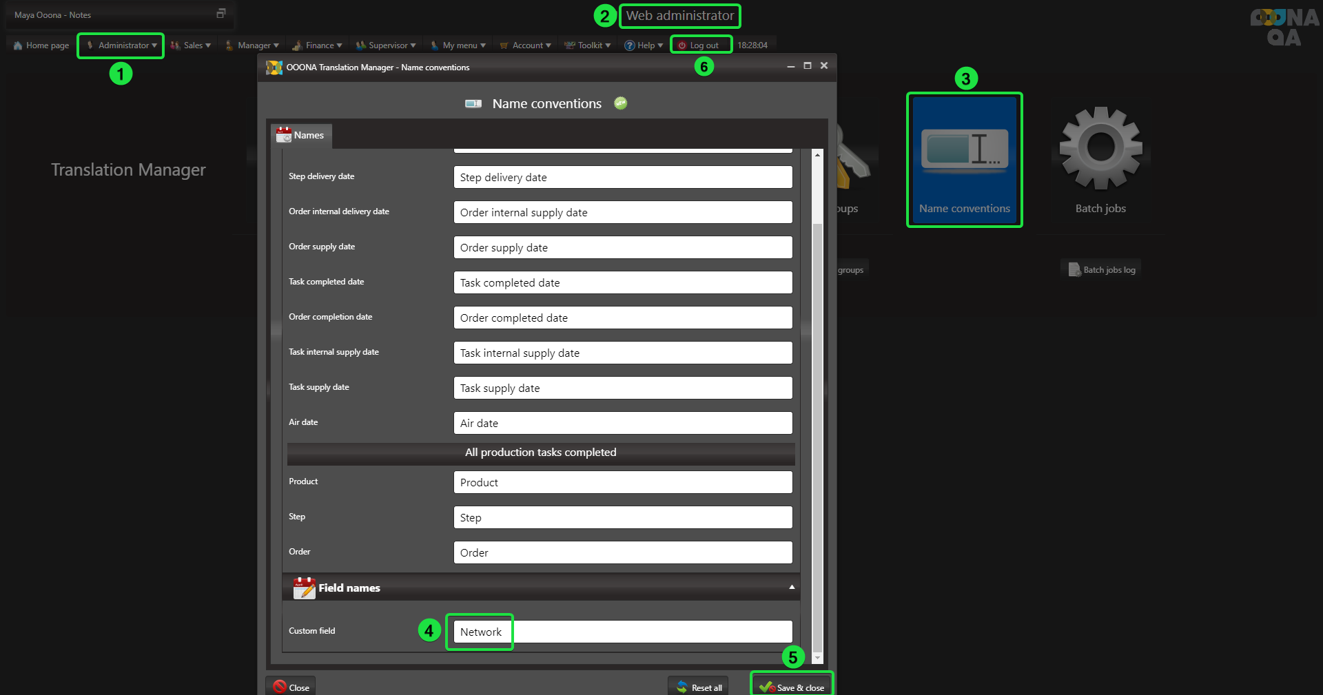 To change the Custom field’s name, go to: Administrator > Web administrator > Name conventions > Custom field