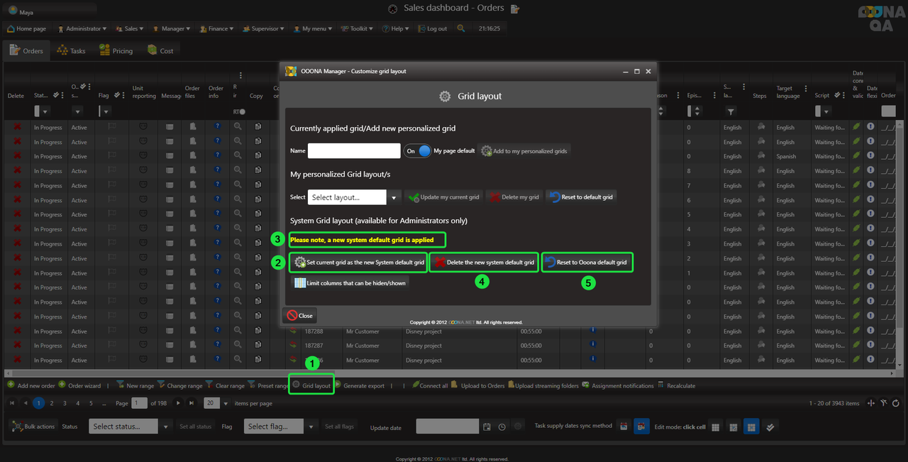 A system grid is saved separately for each page and can only be set by Administrators.