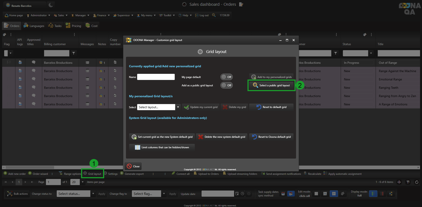 Any user can access the existing public grid layouts from Grid layout > Select a public grid layout: