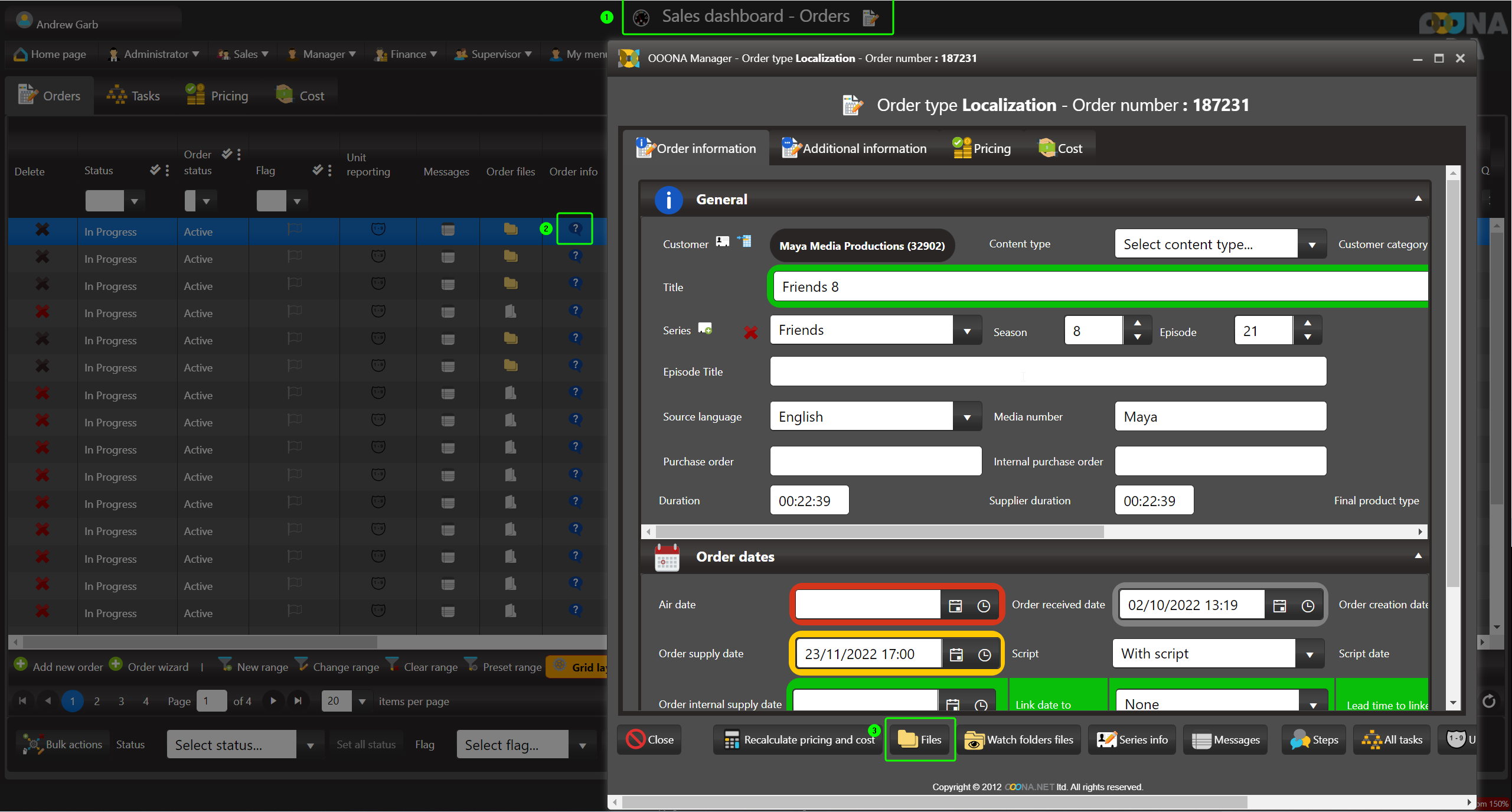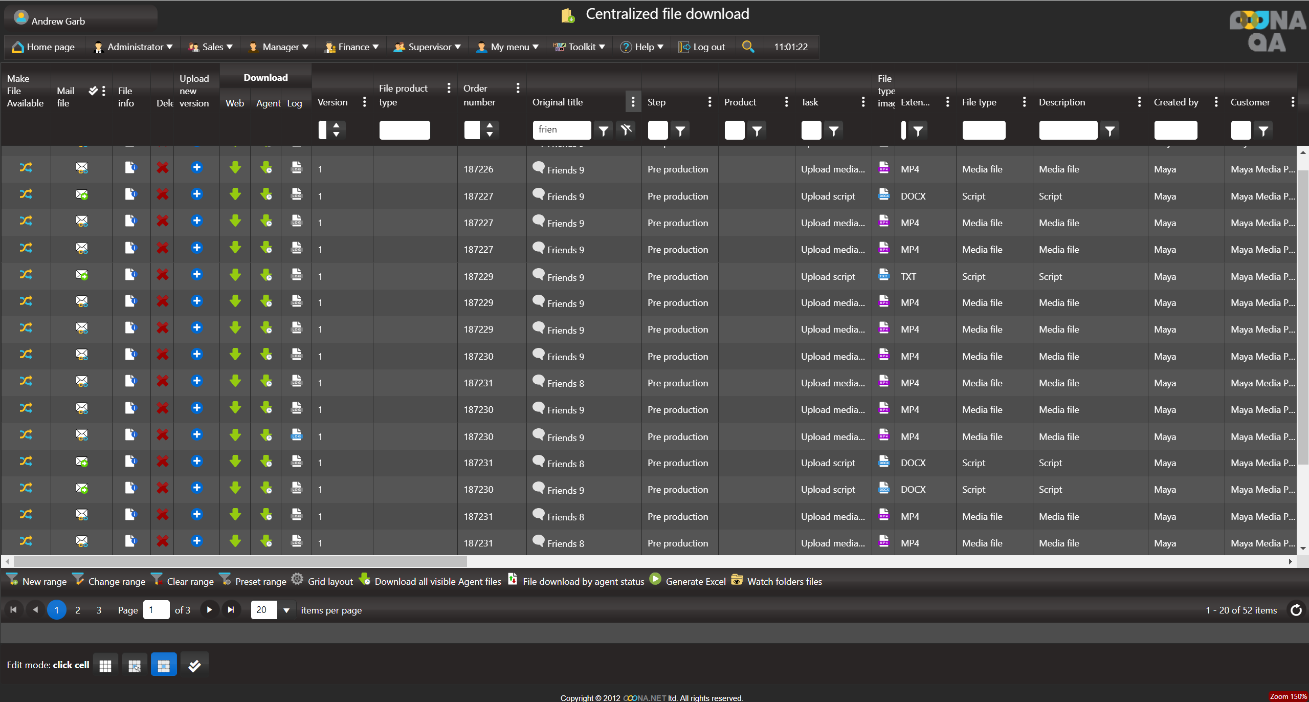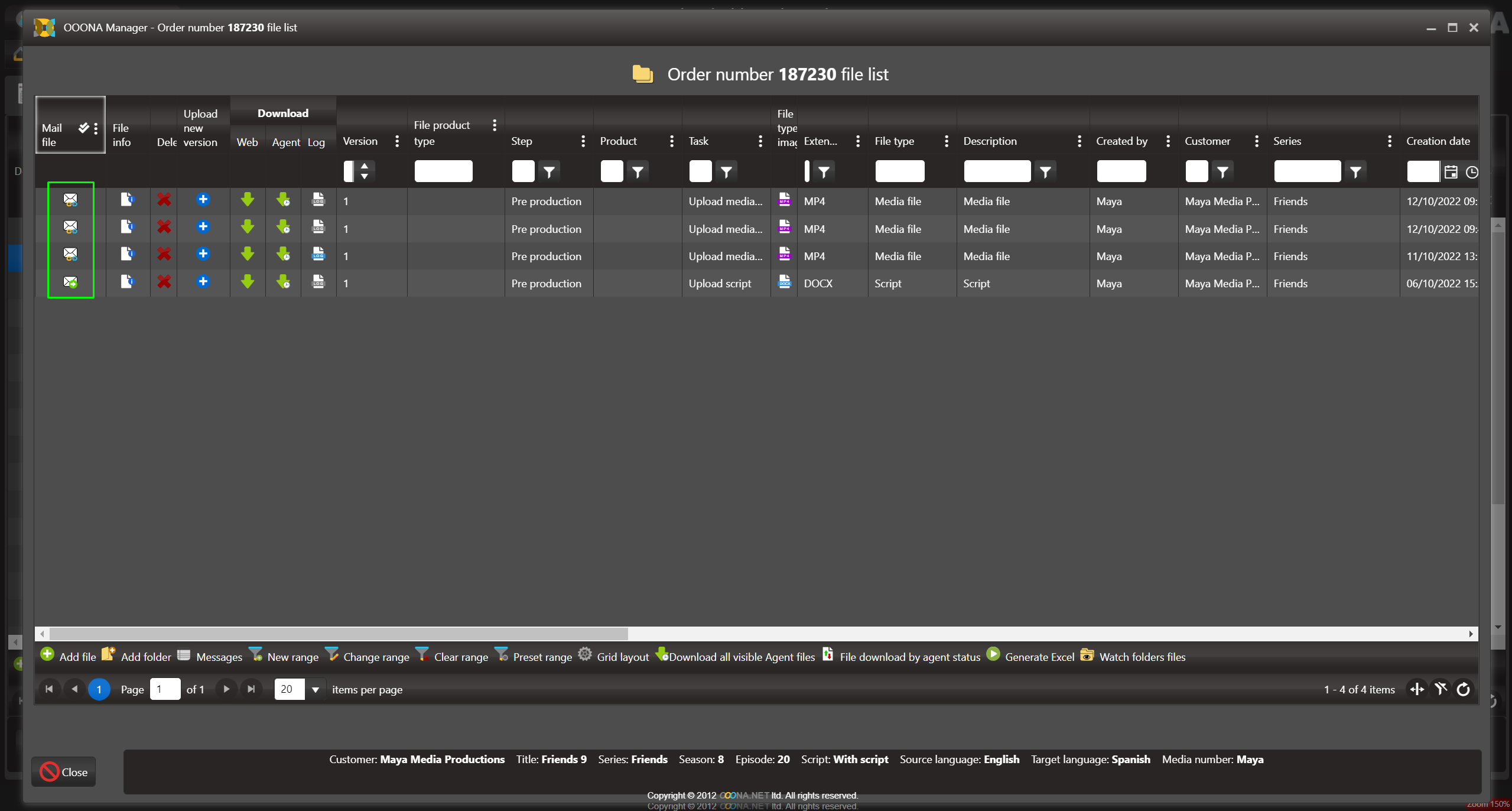 Note: When using the Centralized file download page, you can use the Multi cell functionality to select which files to send in one mail. Learn more about the Multicell pick functionality in this article.
