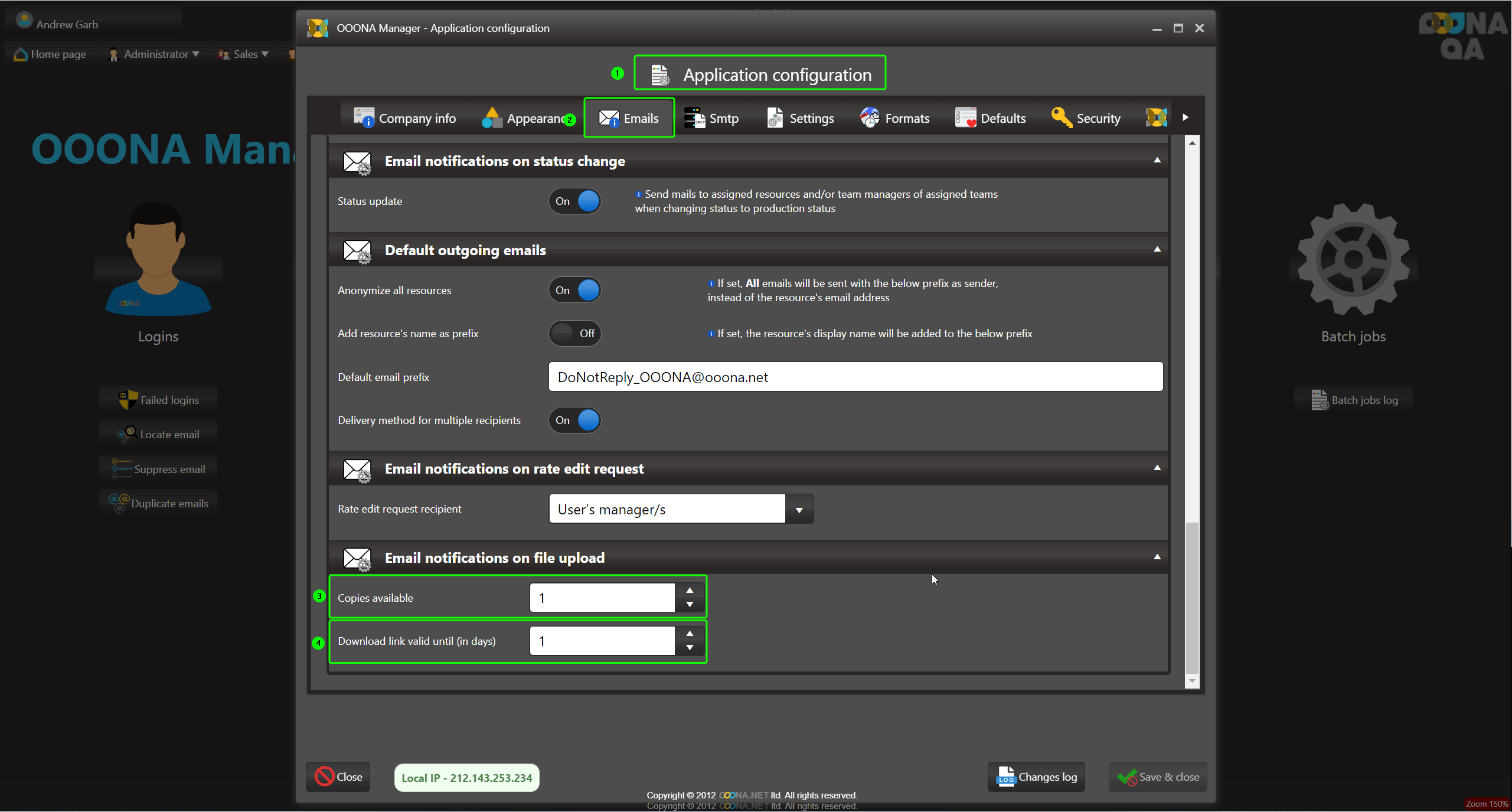 Copies available (fig 3) - set the default value of copies available for download. This setting can be changed on the Send mail page.