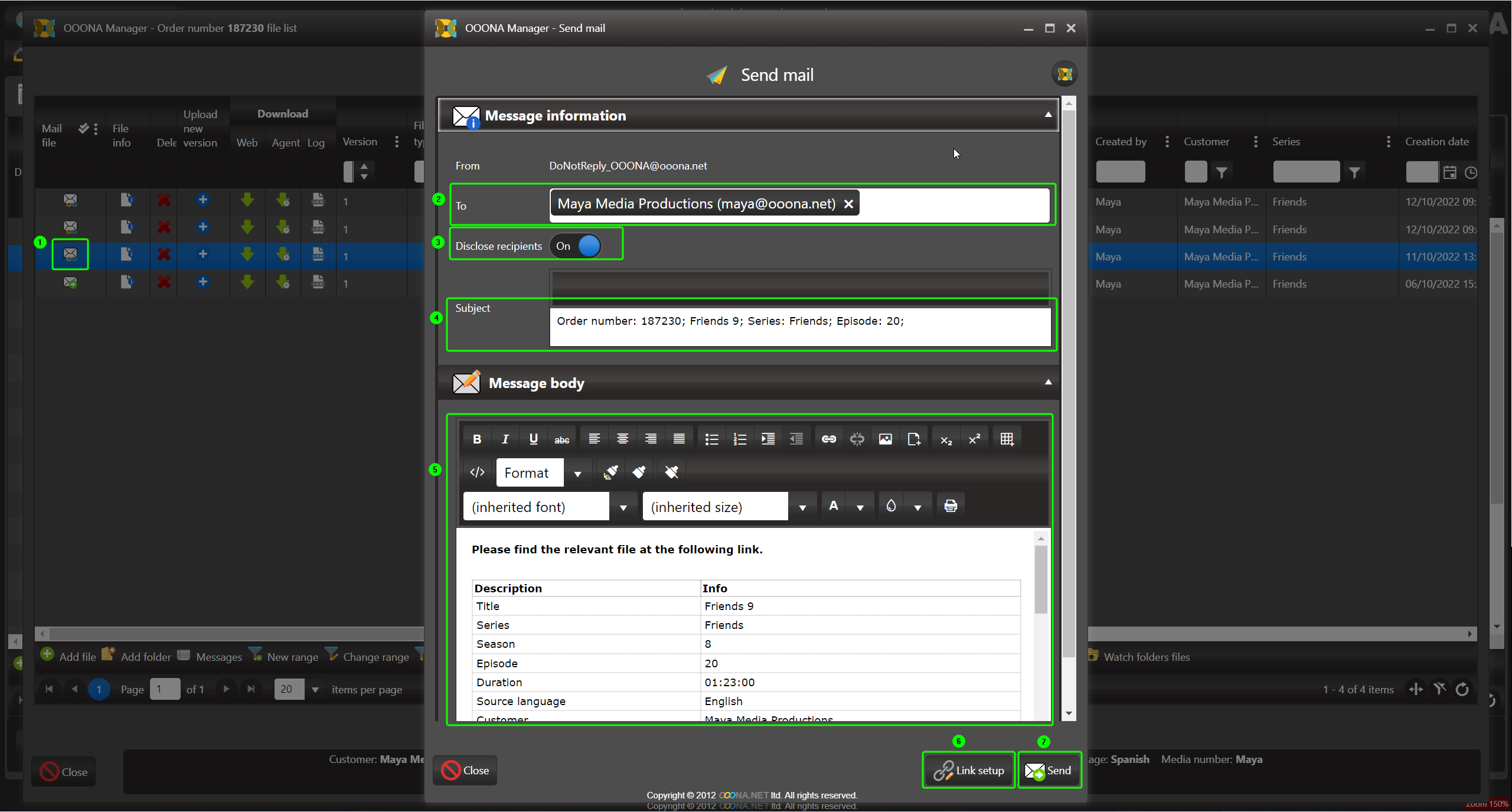 If the mail contains one or more files that are set to be sent as a link, the Link setup button will be available, see next paragraph for details (fig 6)