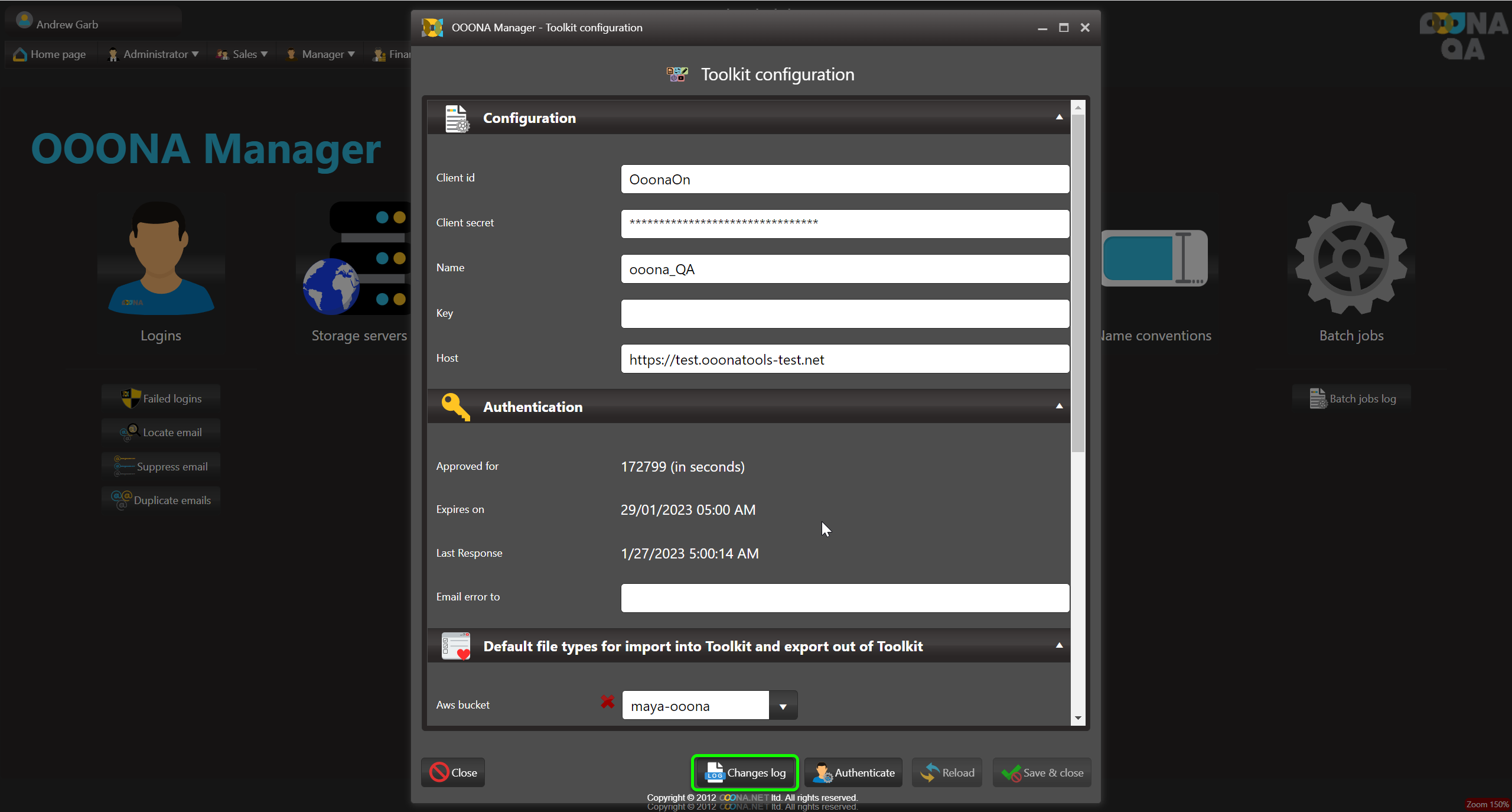 All changes made to the toolkit configuration are logged and can be accessed via