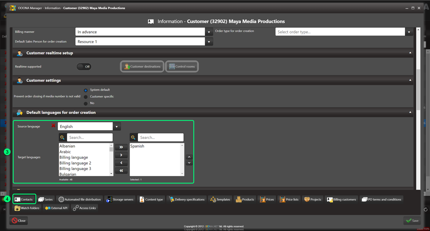 Contacts can be added to orders, and will be available for selection when manually sending files to customers.