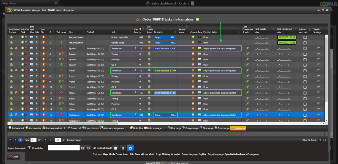 All tasks that are set with Previous task: “All pre-production tasks completed”, will receive a notification once all pre-production tasks are completed.