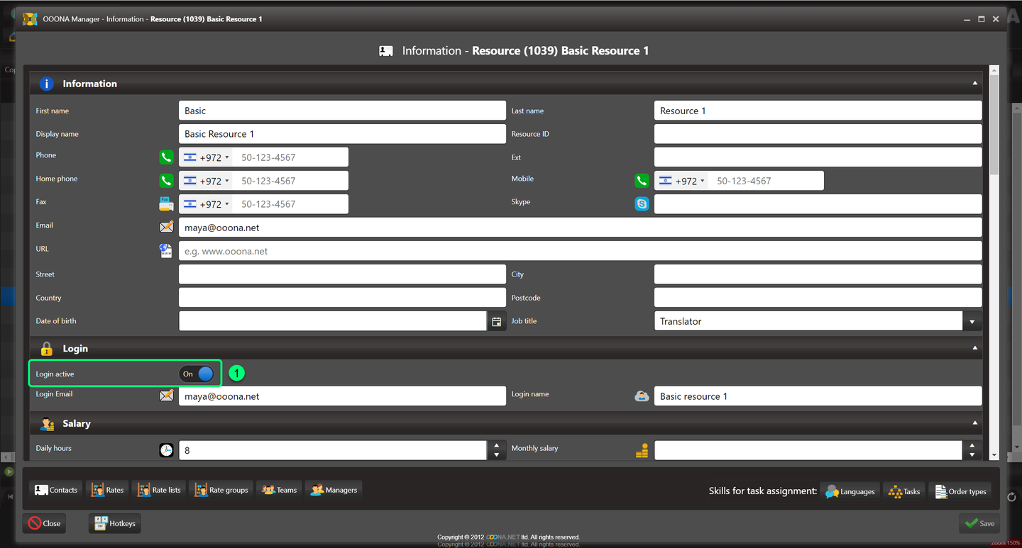“Login active” (fig 1) - should be set to ON to allow the resources access to the system