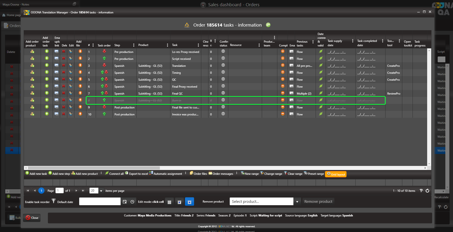 Only after replacing the inactive tasks in the new orders with active tasks, the status of the orders can be changed from “New” to “In progress”.