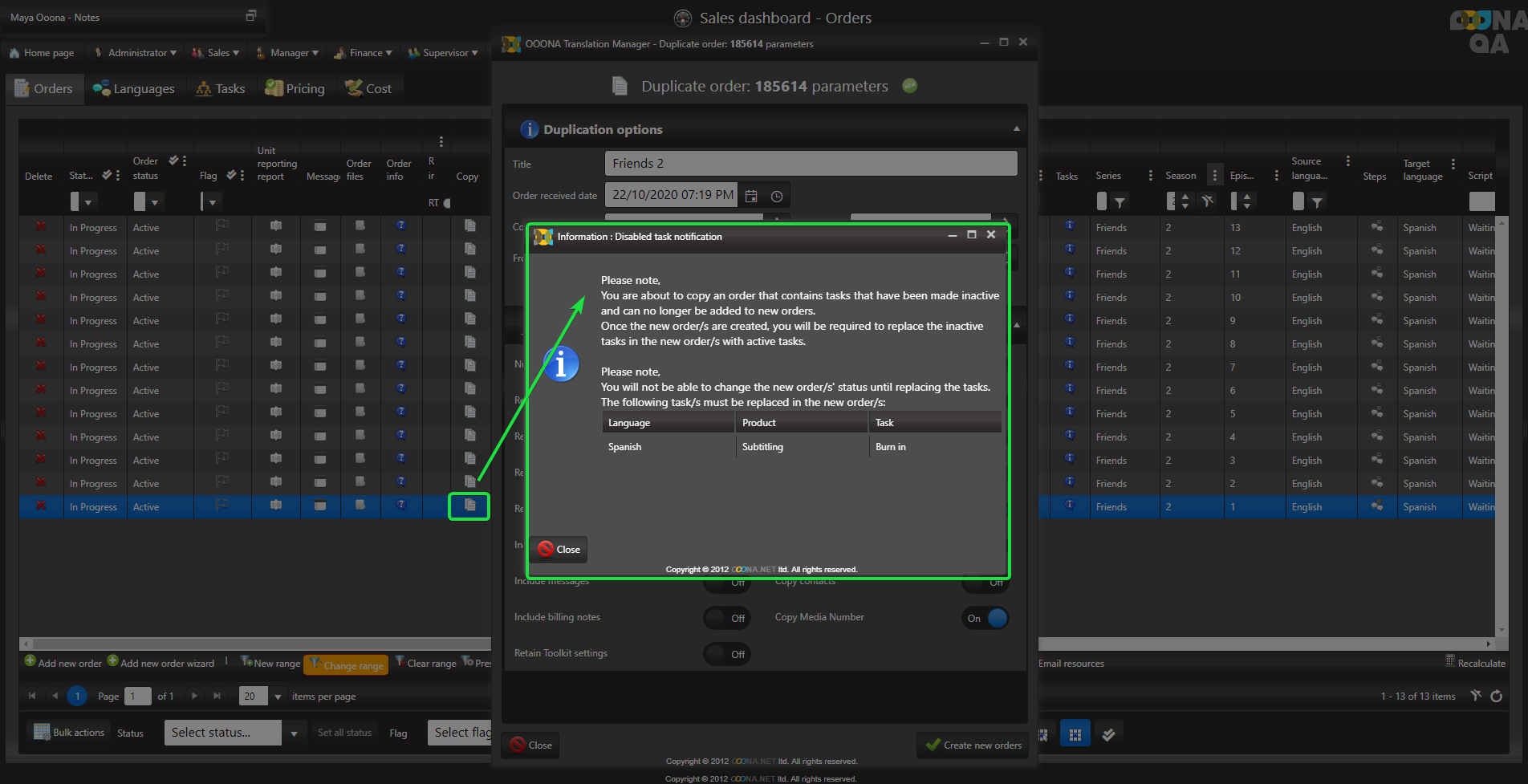 In addition, a dependency was added with the status of the order to prevent copying orders with inactive tasks.