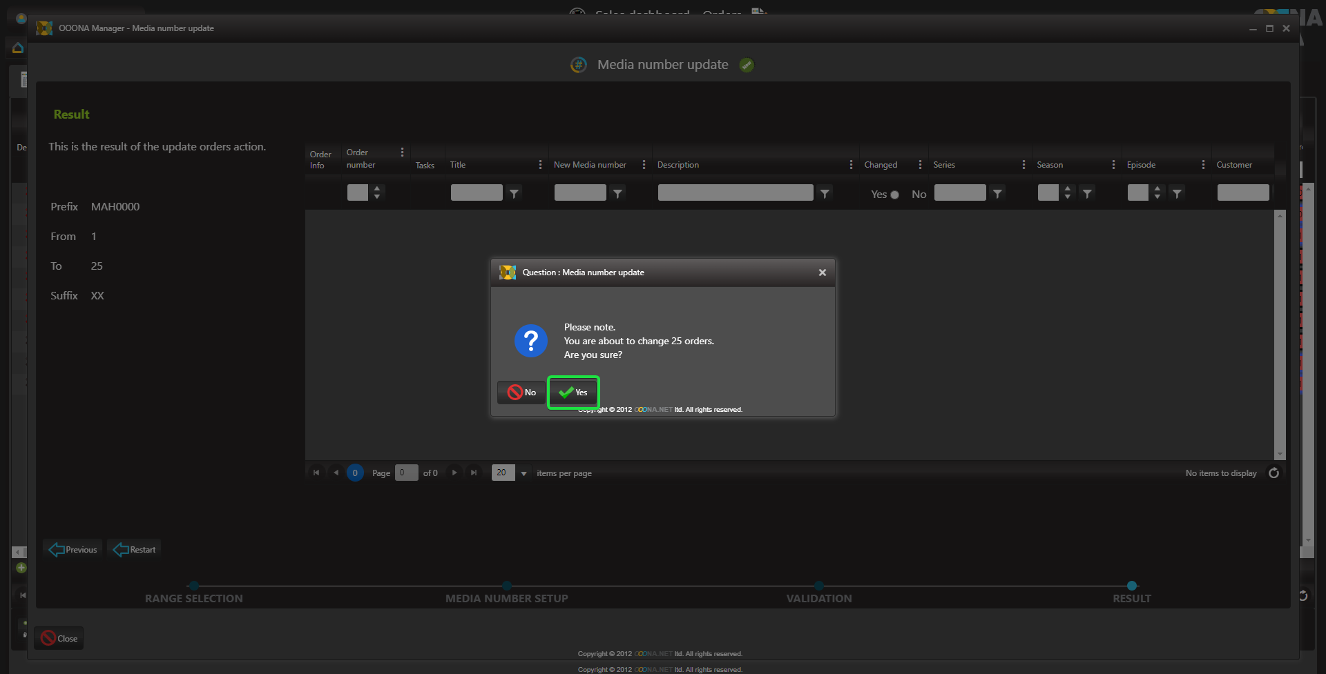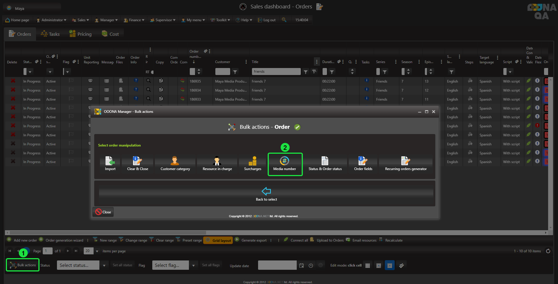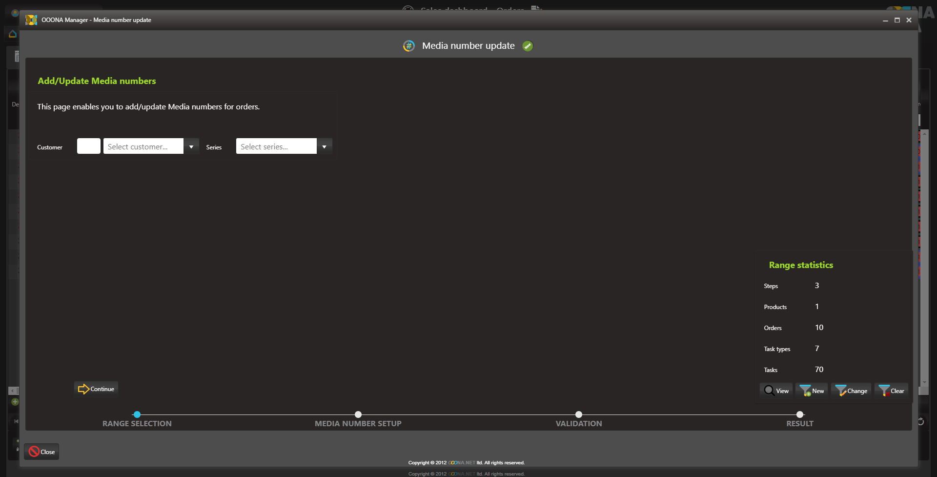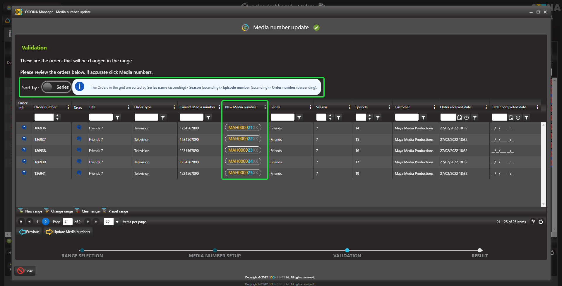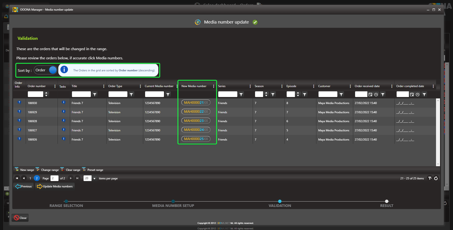 The Media number generator enables to quickly enter consecutive media numbers to multiple orders.