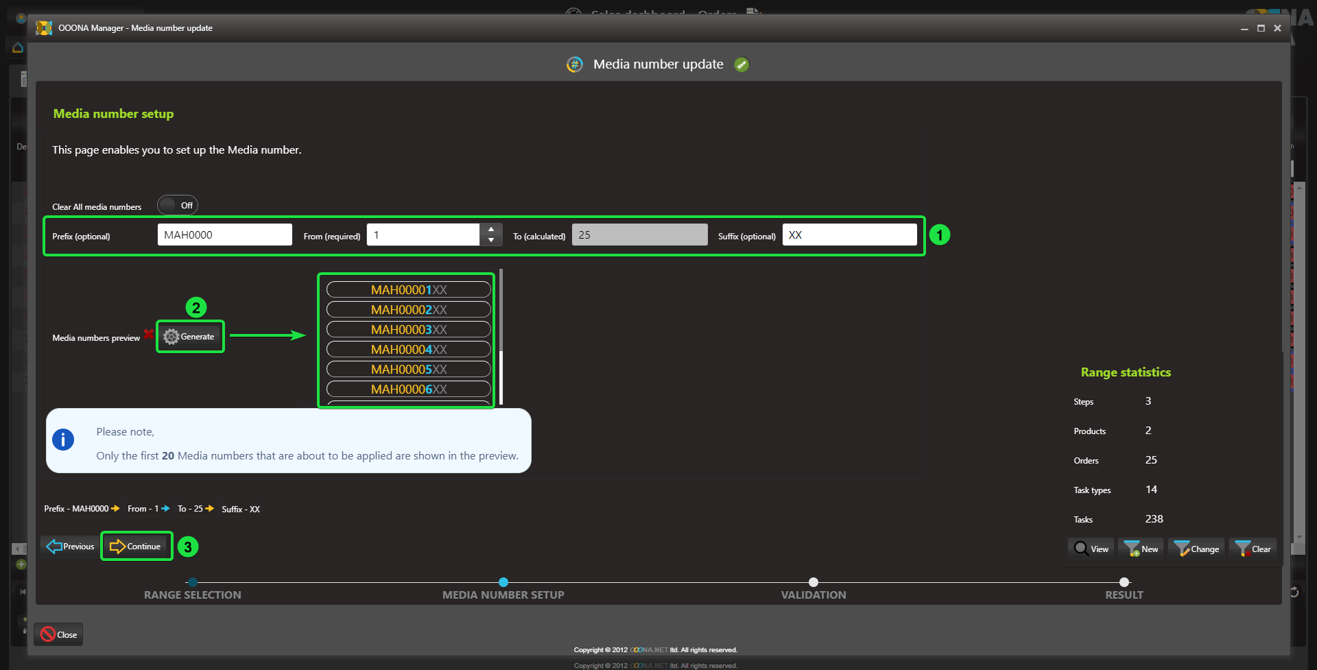 Click “Generate” to preview the media numbers that are about to be entered (fig 2)