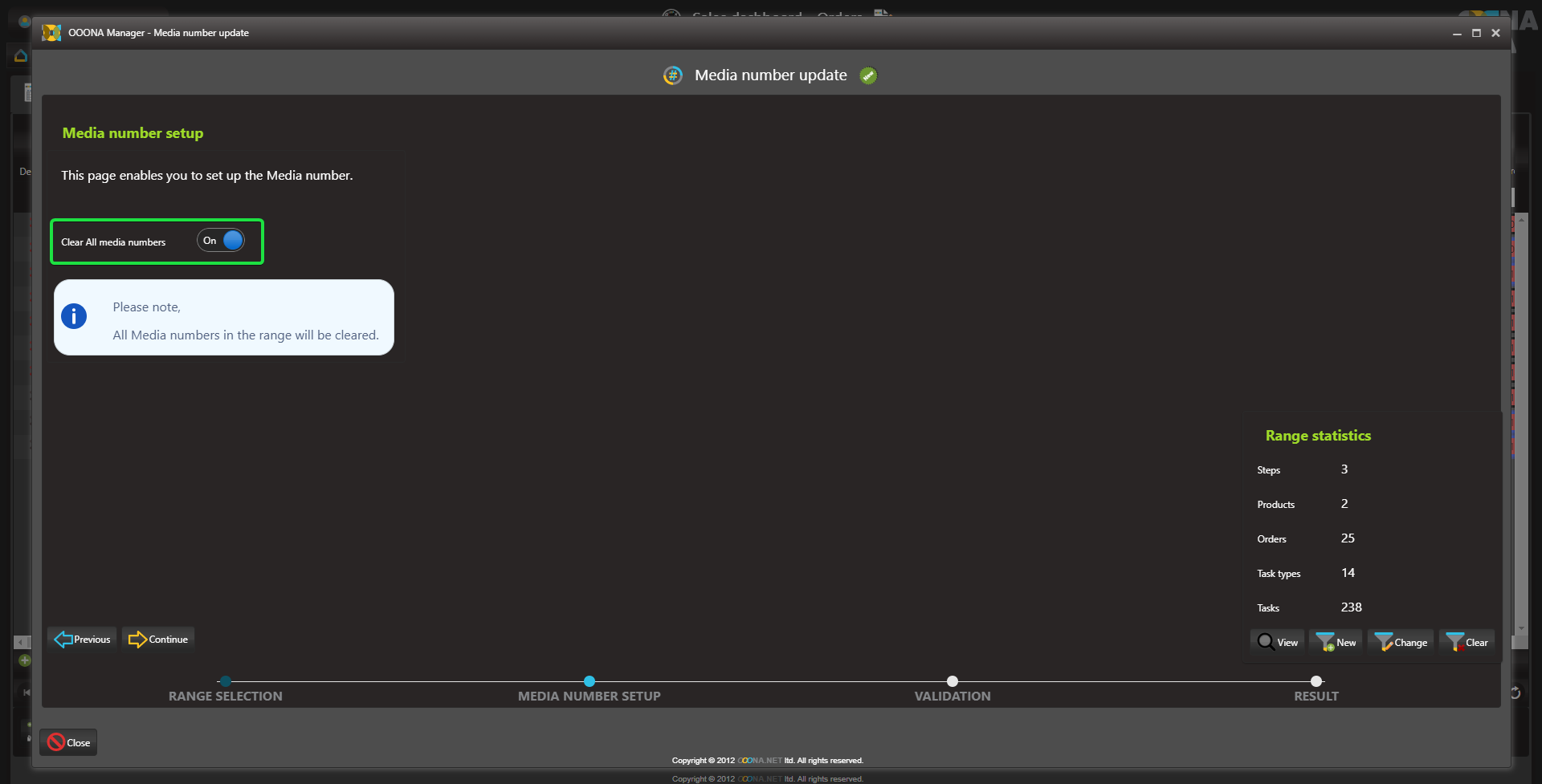 The Media number generator can also be used to clear existing media numbers from orders: