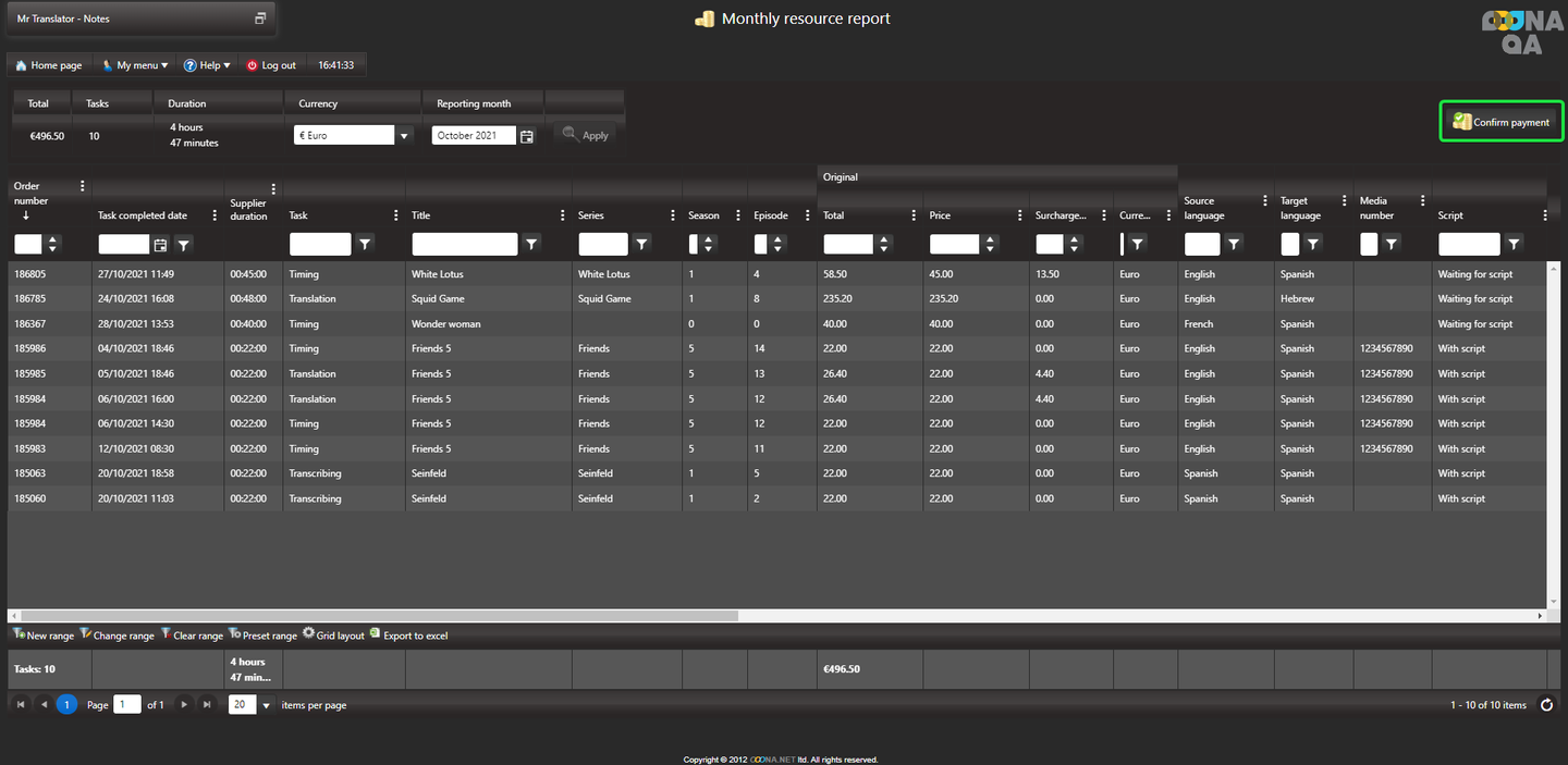4. Once approved, a “Confirm payment” will be added so you can keep track of your incoming payments (this is not mandatory and only for your own convenience).