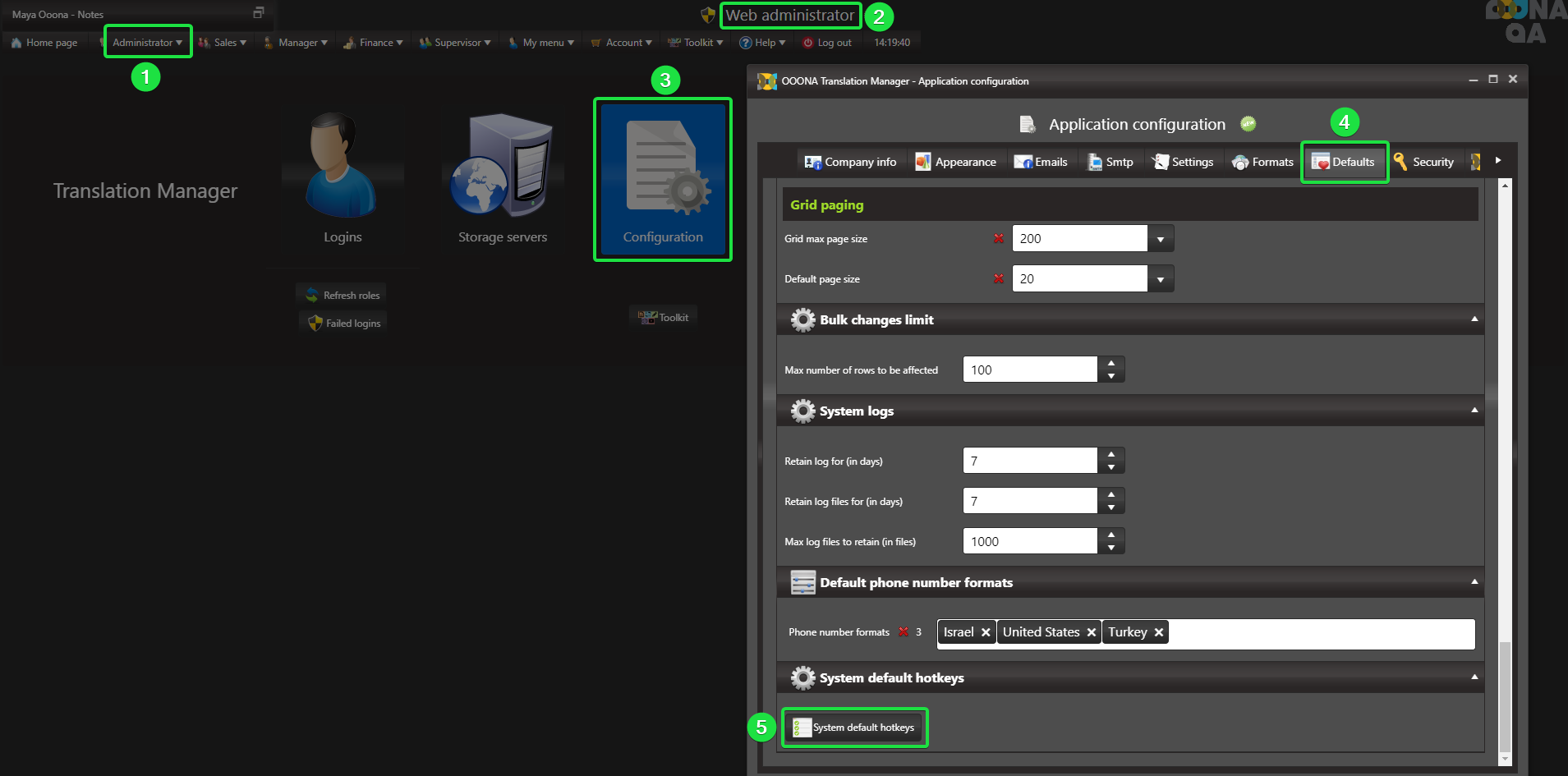 From: Administrator > Web Administrator > Configuration > Defaults > System default hotkeys section (fig 5):