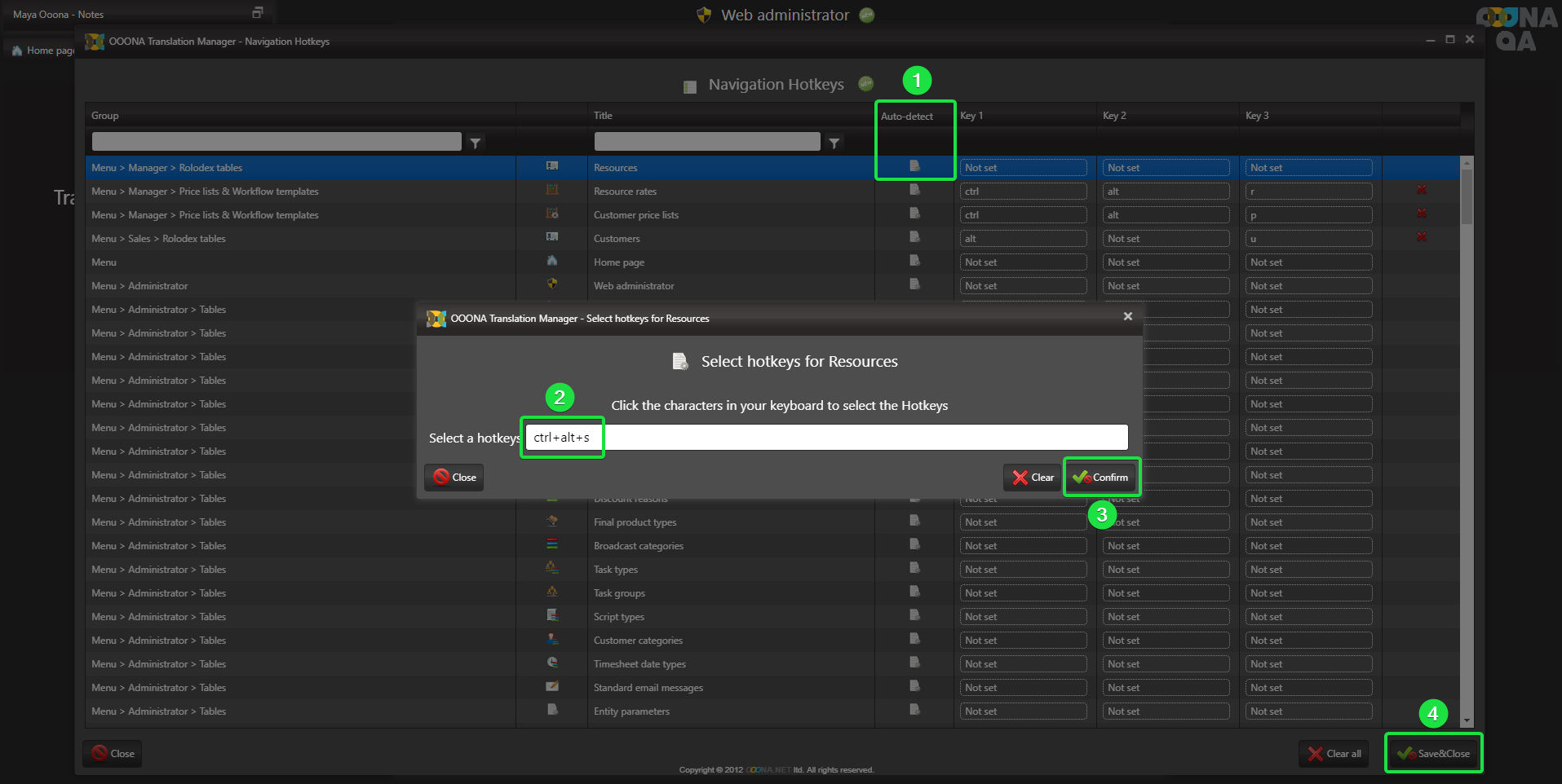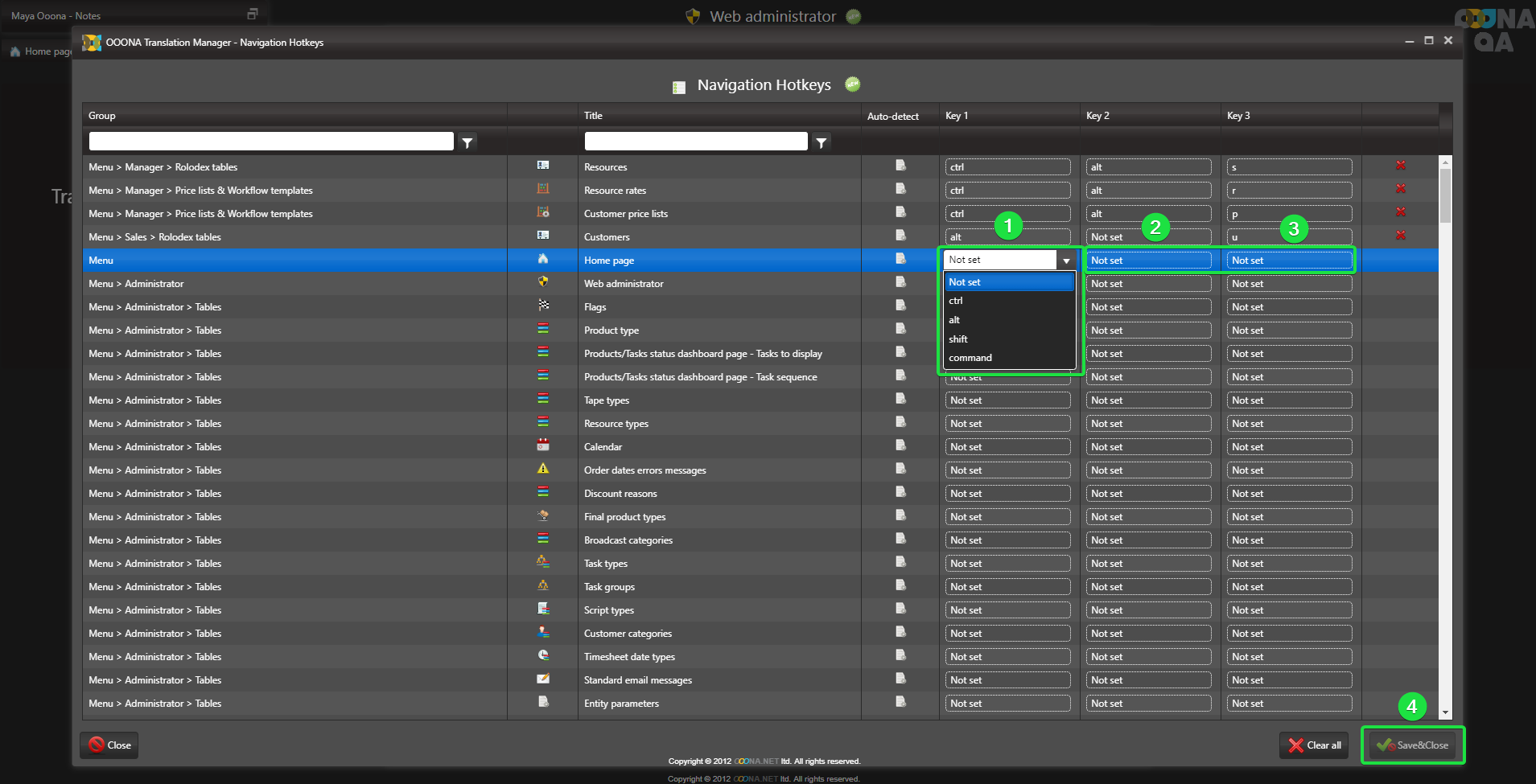 Once you finish setting up all the required navigation Hotkeys, click “Save and close” to save your work (fig 4):