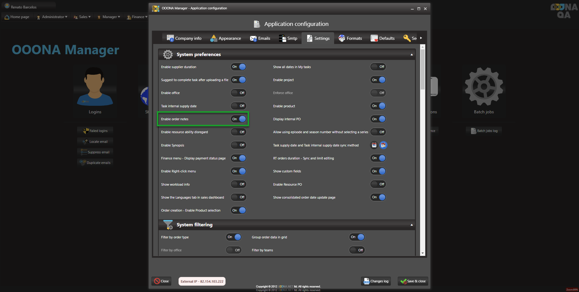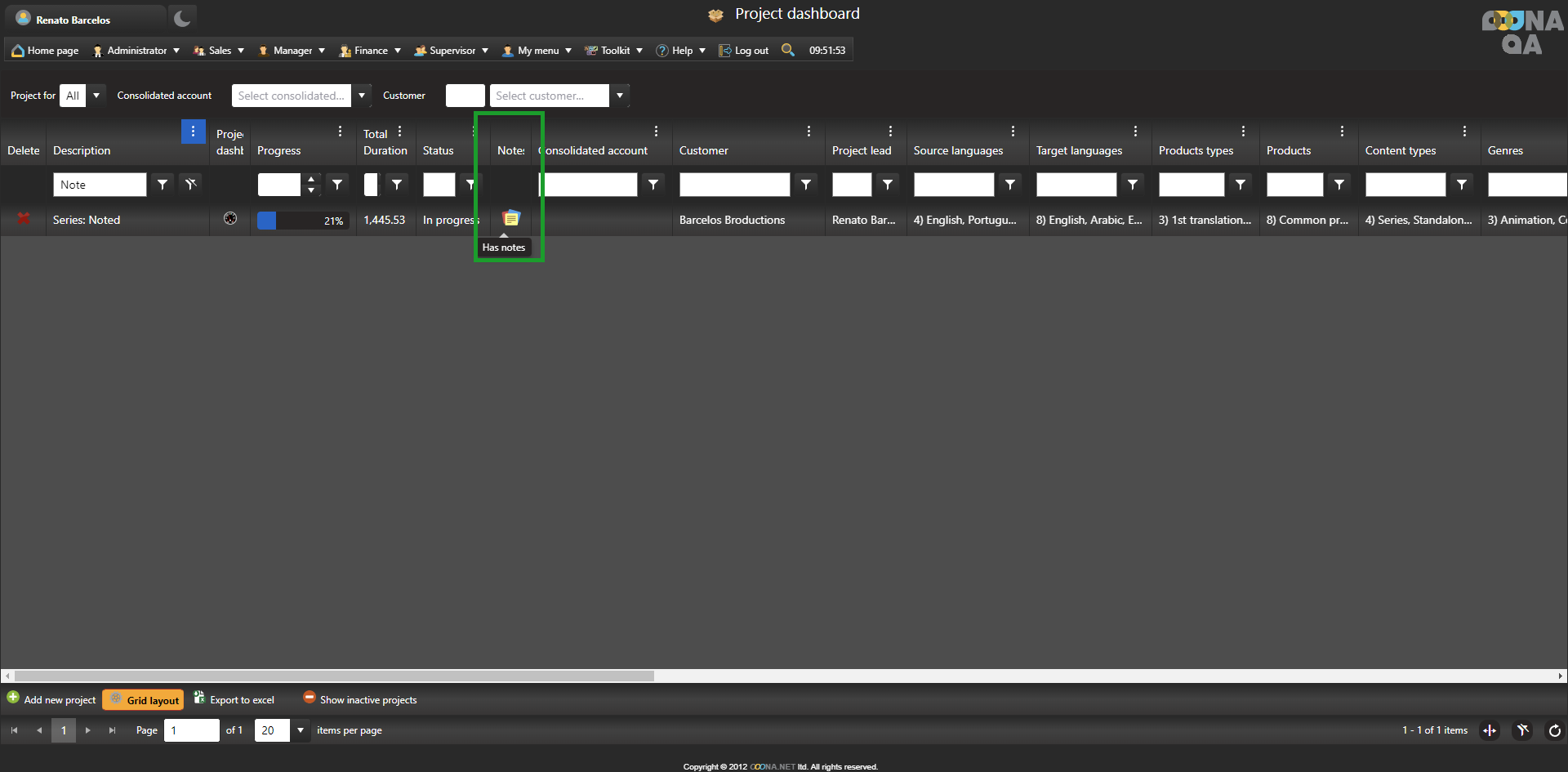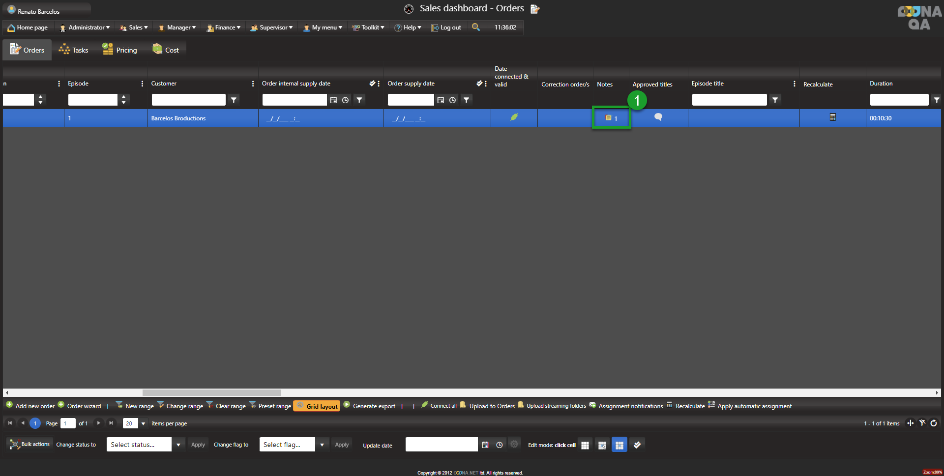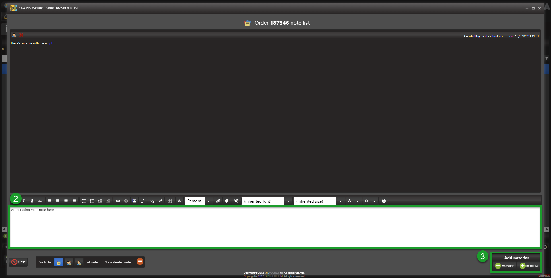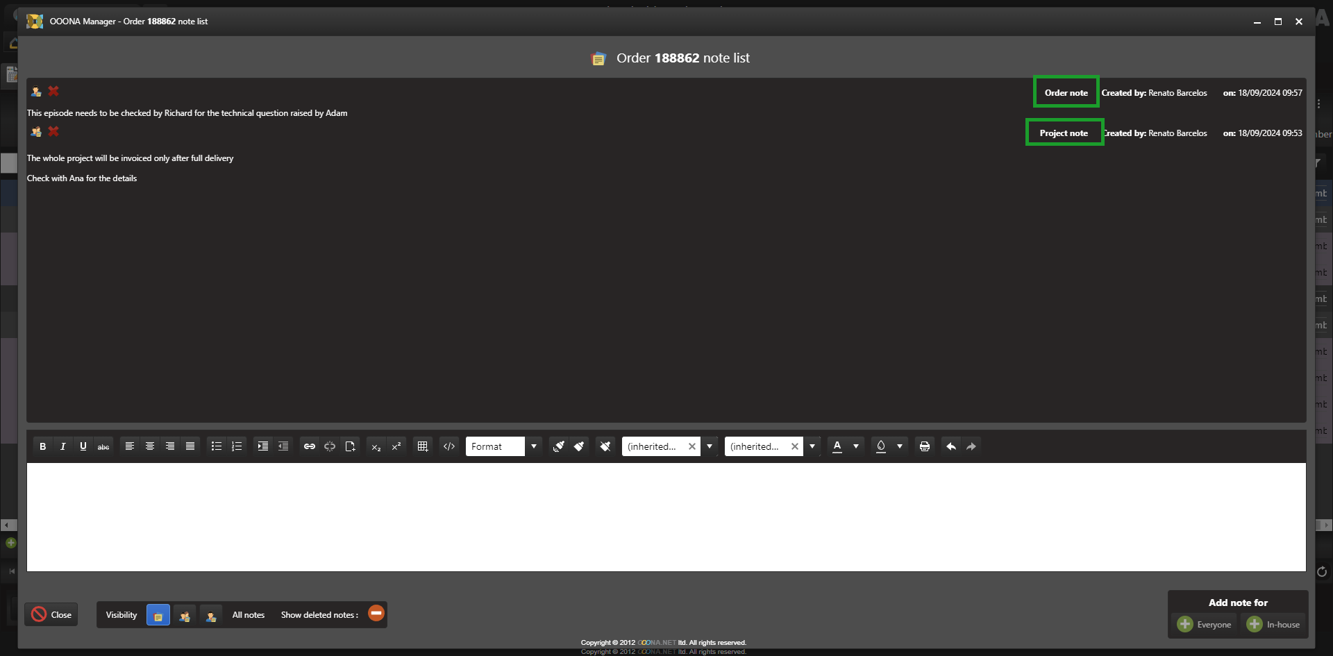 It’s also possible to access a list of all notes from orders within the project, from the “Order notes” page (2).