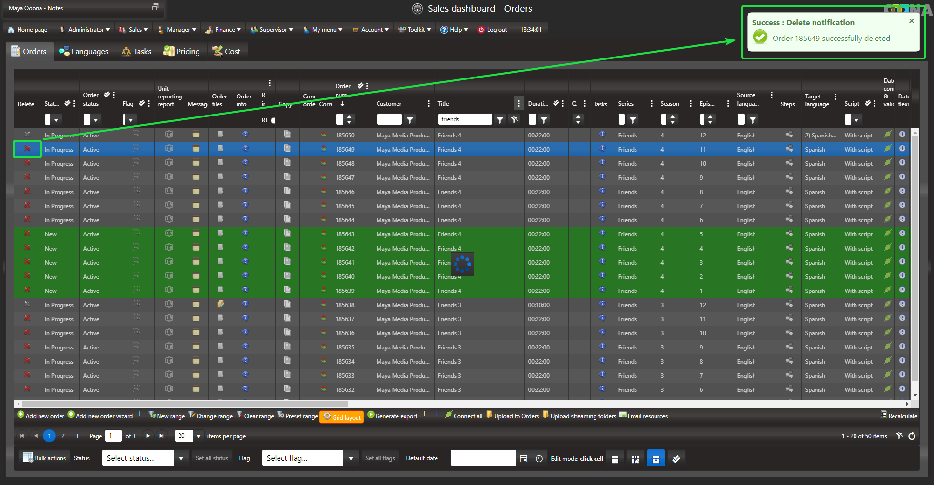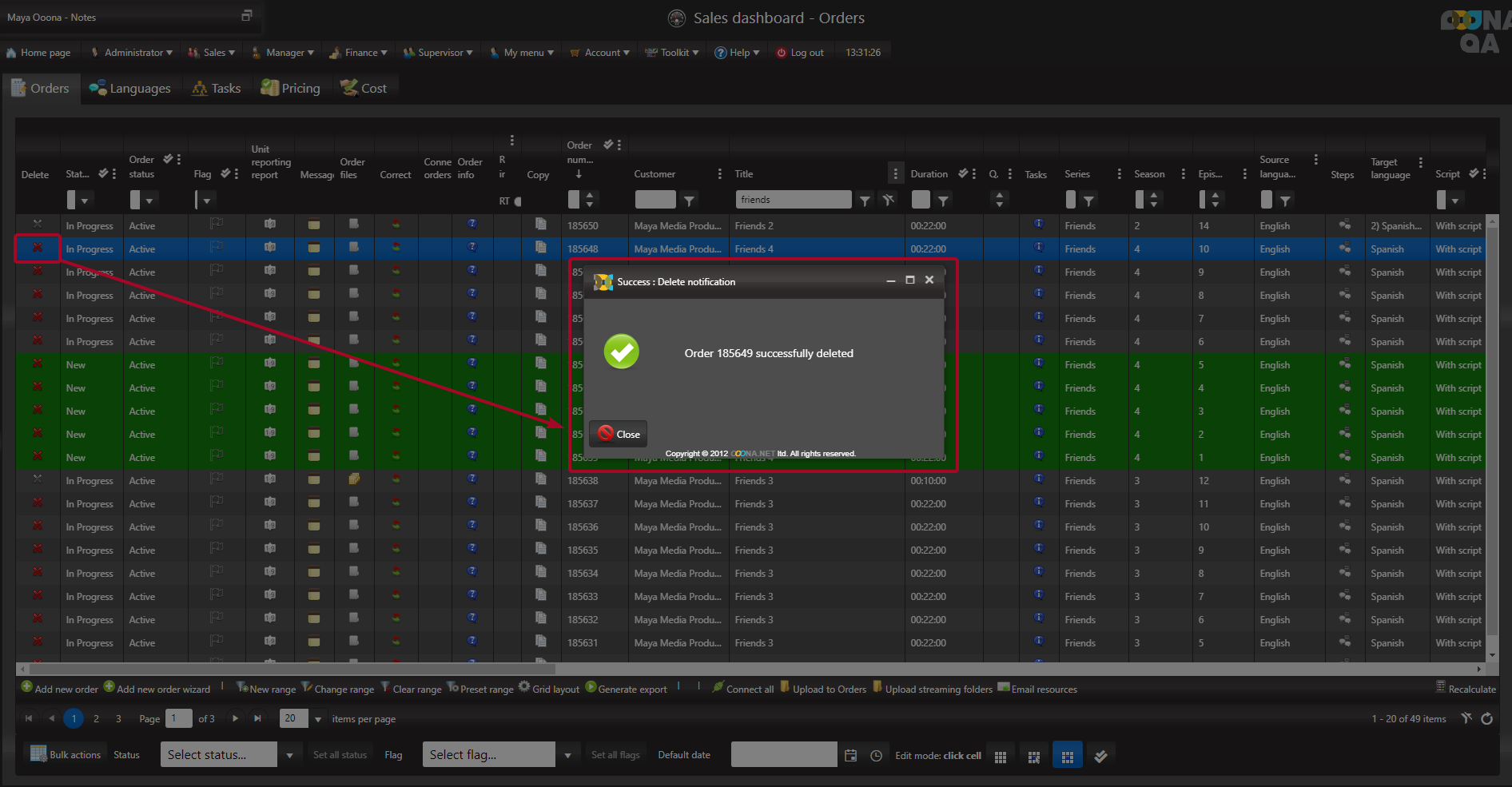 For example, after deleting an order, you no longer have to click “Close” to close the pop-up alert: