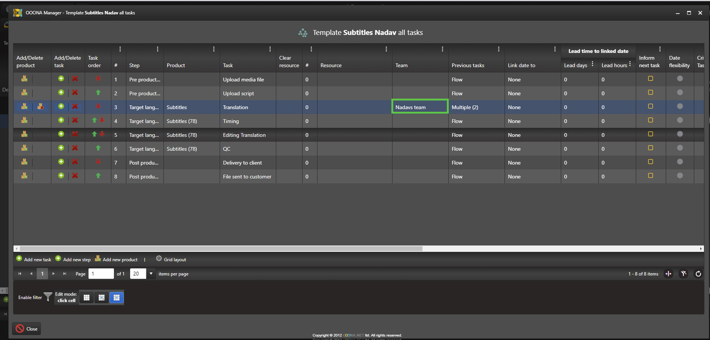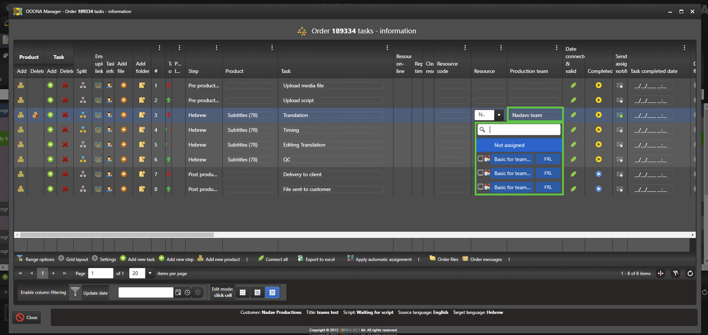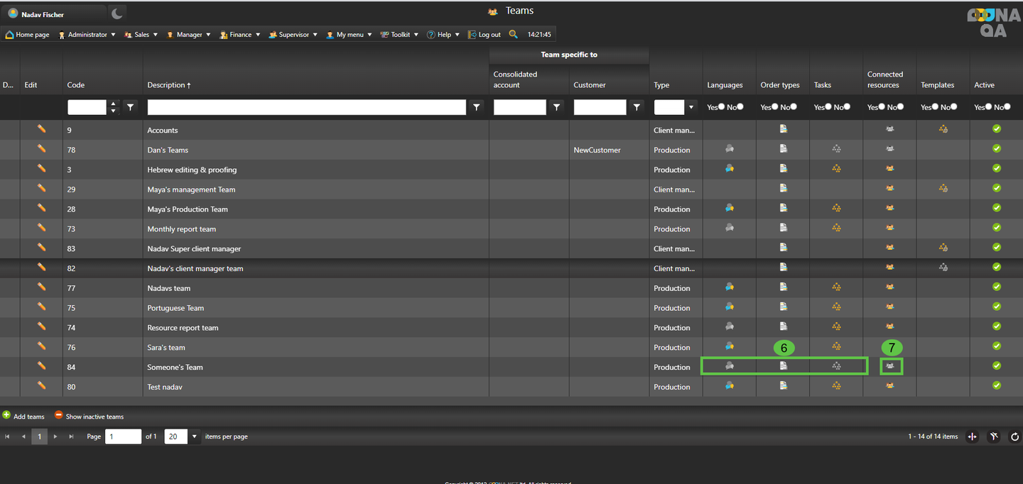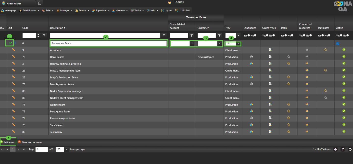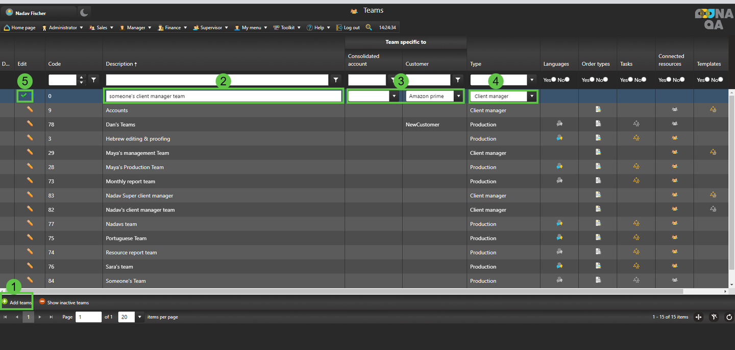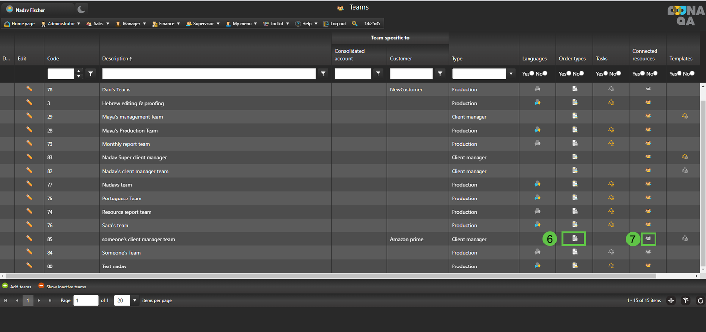 6. After creating the team, set the production teams’ skills using the “Languages”, “Order Types” and “Tasks” columns.