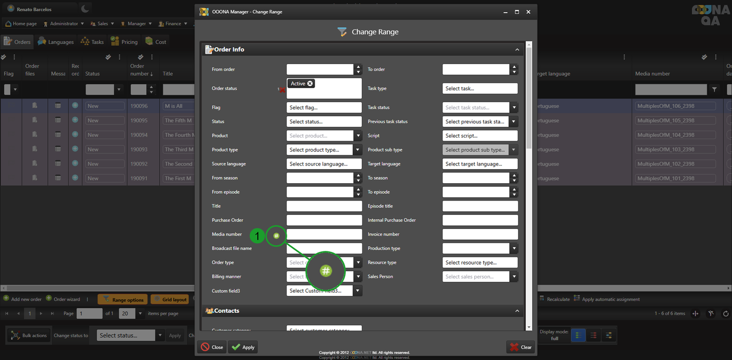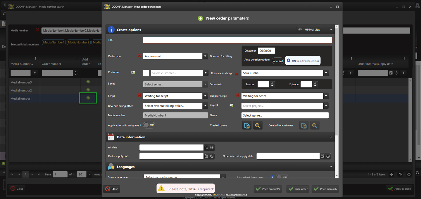 It is now possible to create an order from media numbers. To do so, click the icon next to the media number field (1).