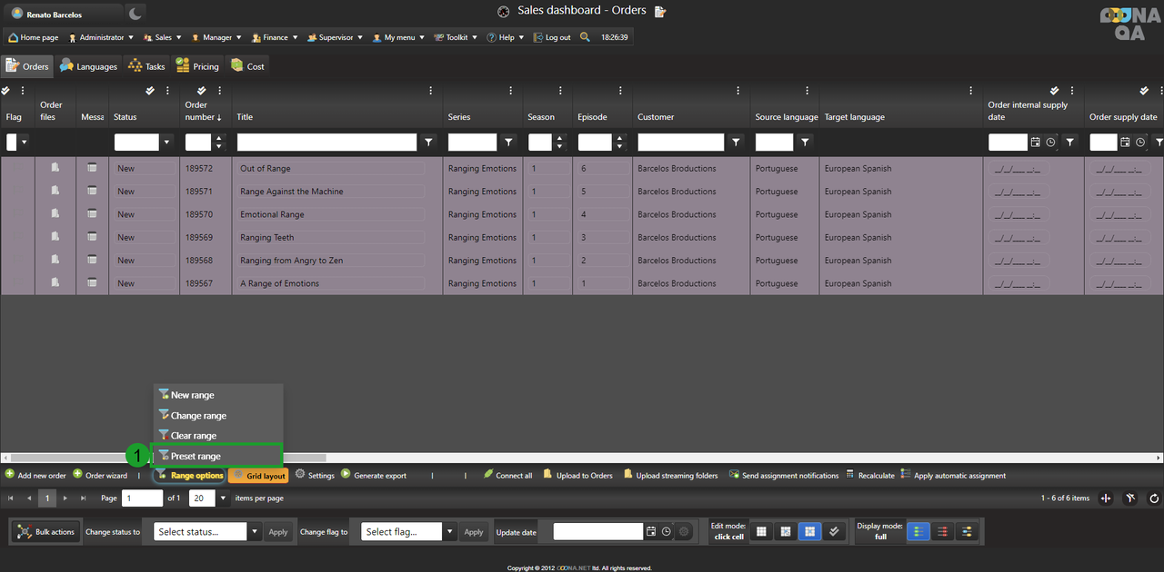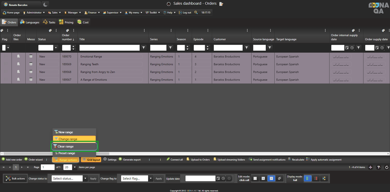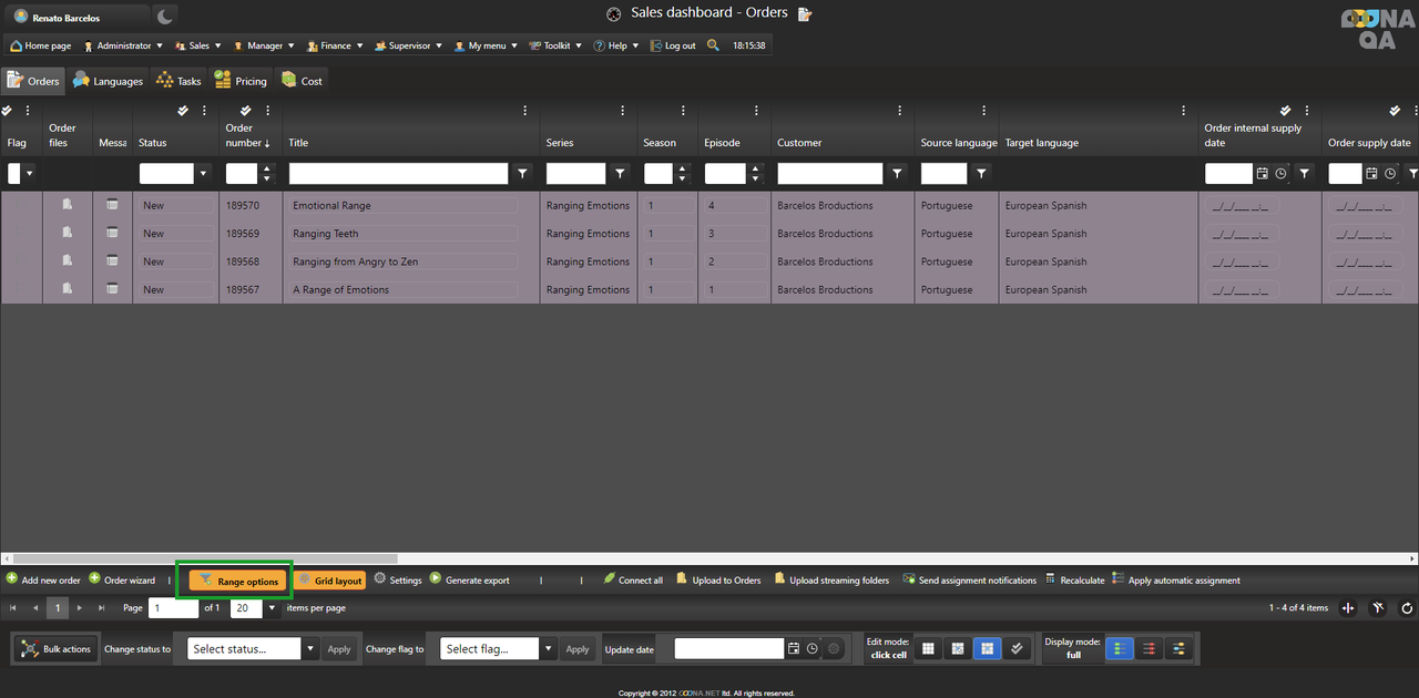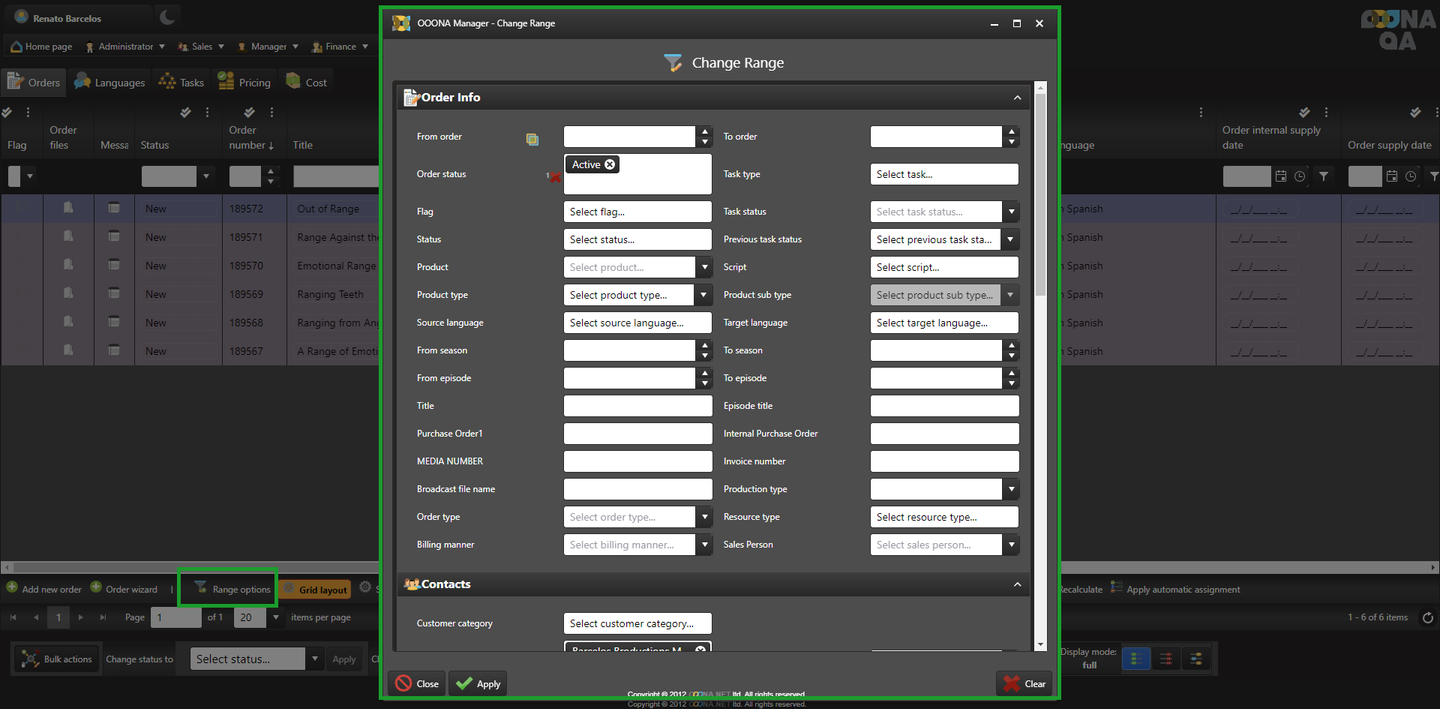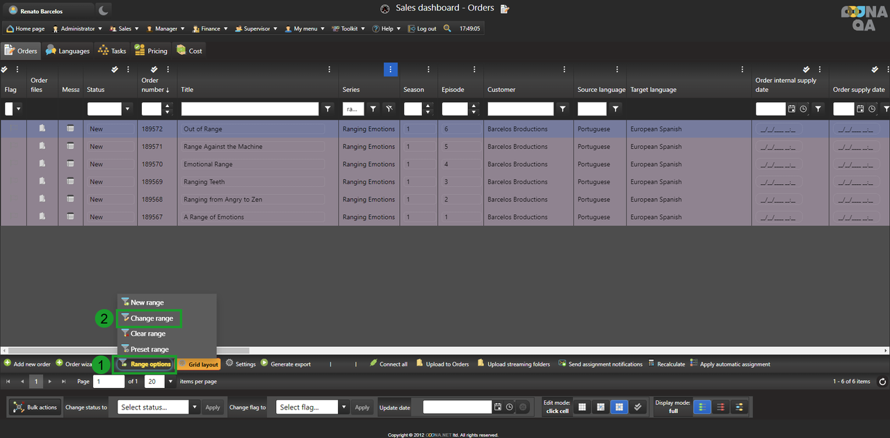 From the “In Range” column (1), it indicates if the order is part of the current range or not.