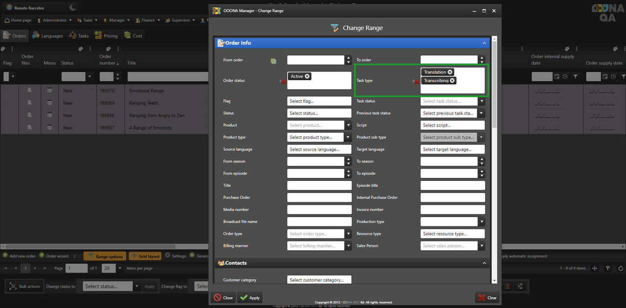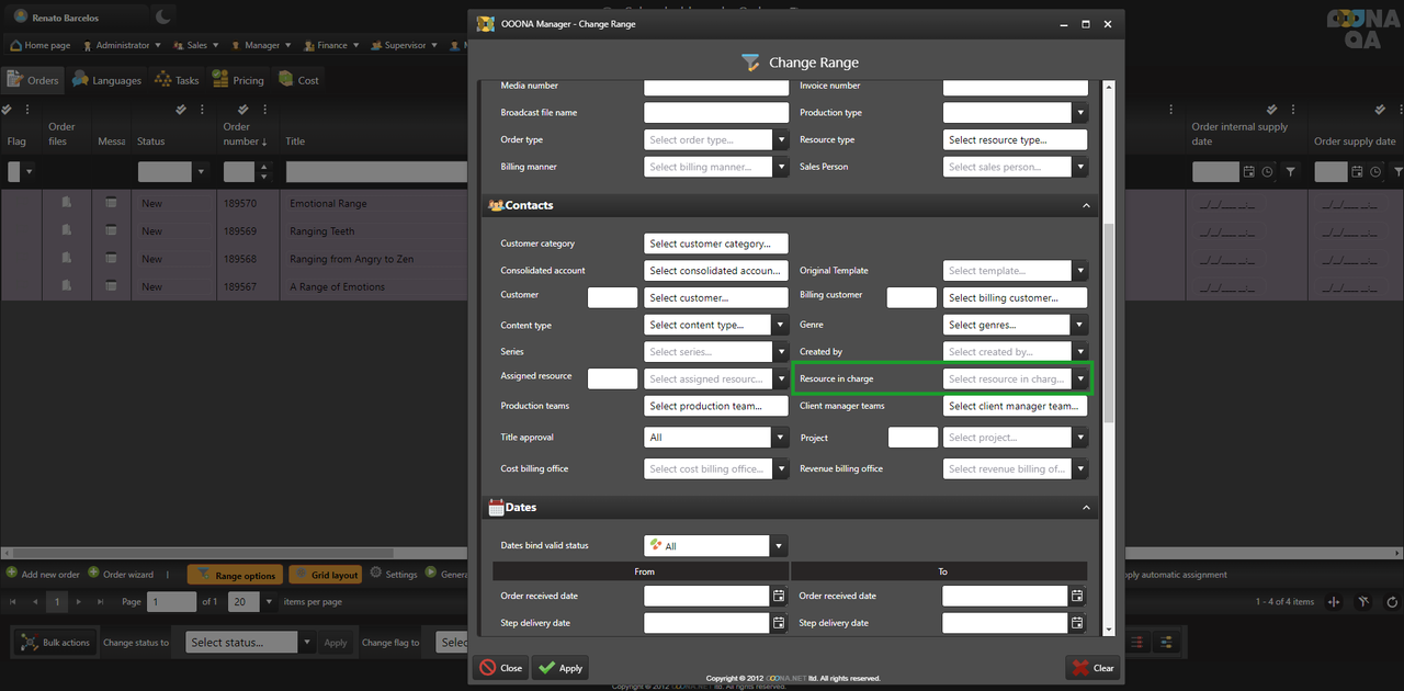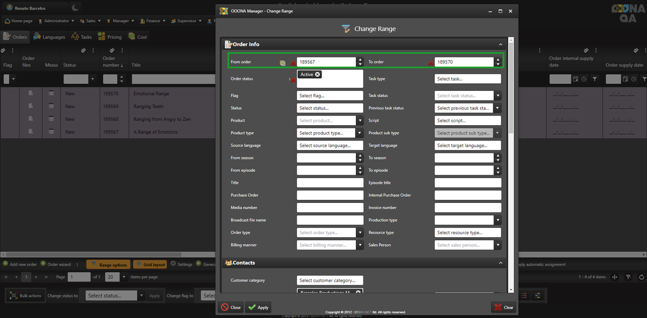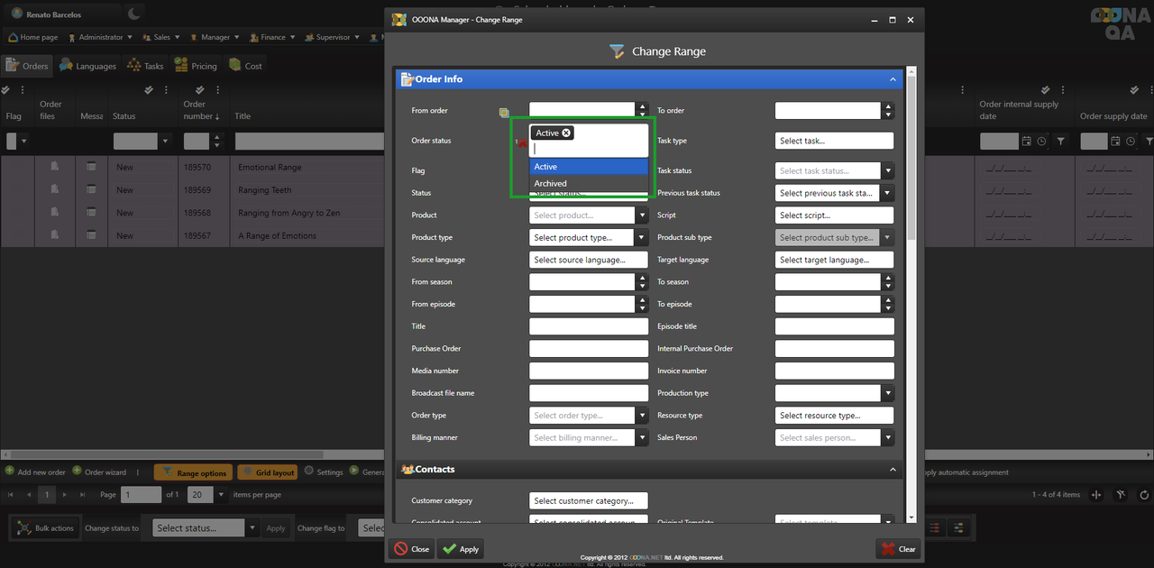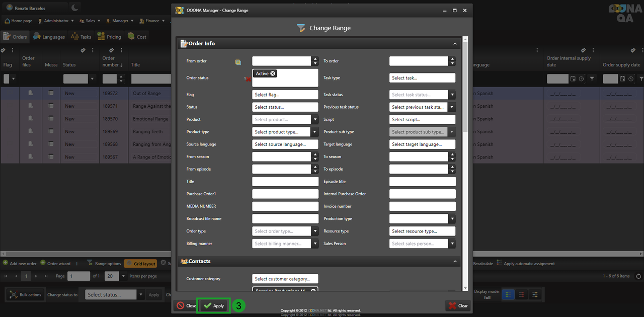 From the “In Range” column (1), it indicates if the order is part of the current range or not.