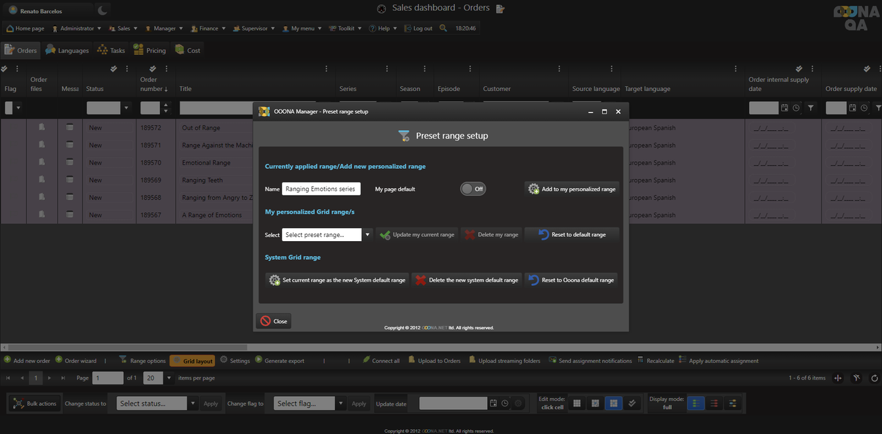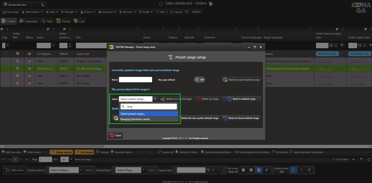 From the preset range page, it’s also possible to save changes done to a preset range or delete existing ones.