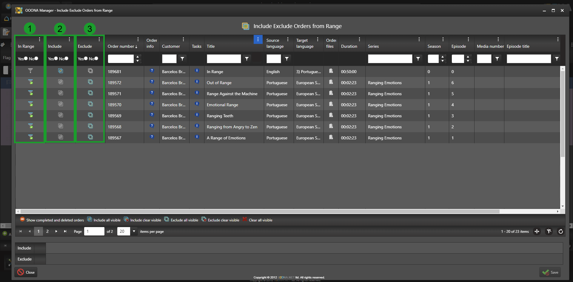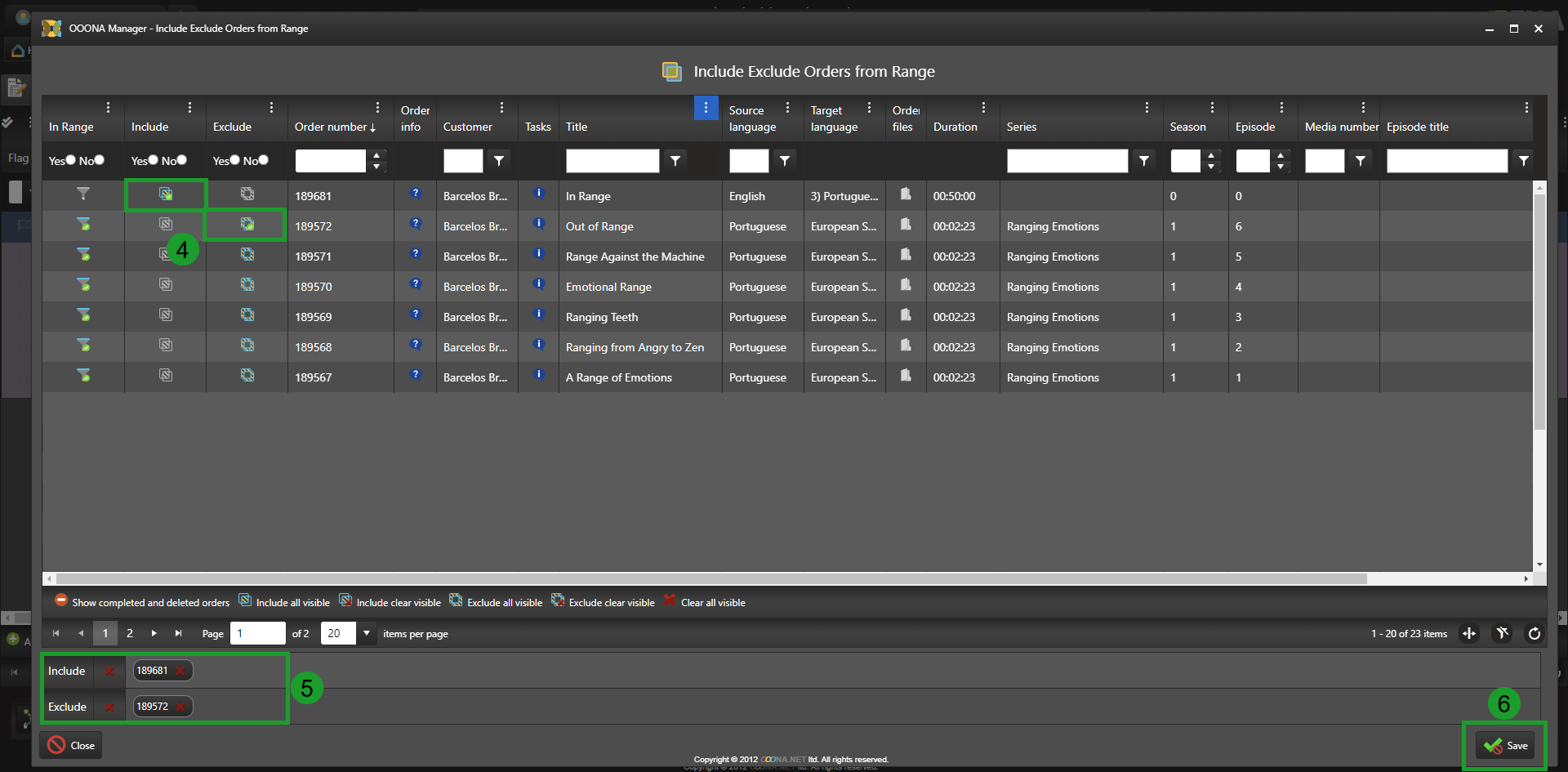 From “Exclude” (3), we can mark a currently included order to be excluded from the current range.