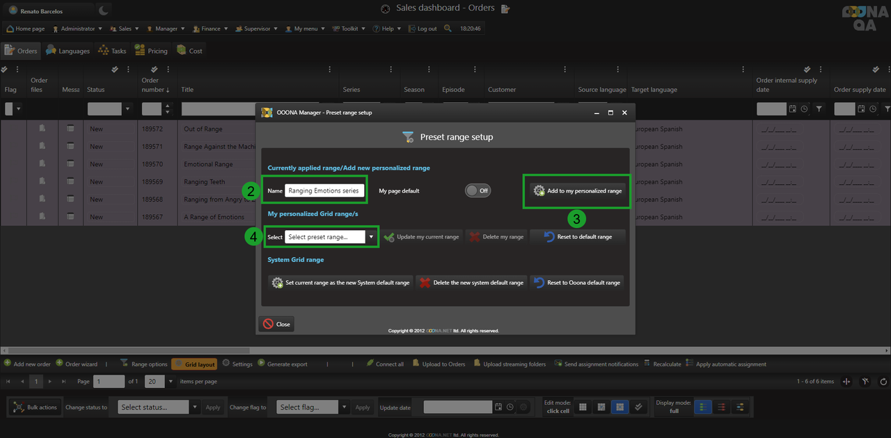 After creating a range and applying it to the page, it can be saved as a preset for future use: