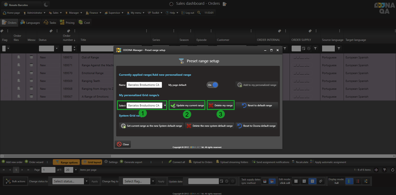 Likewise, after selecting a preset range (1), it can be deleted using the “Delete my range” option (3).