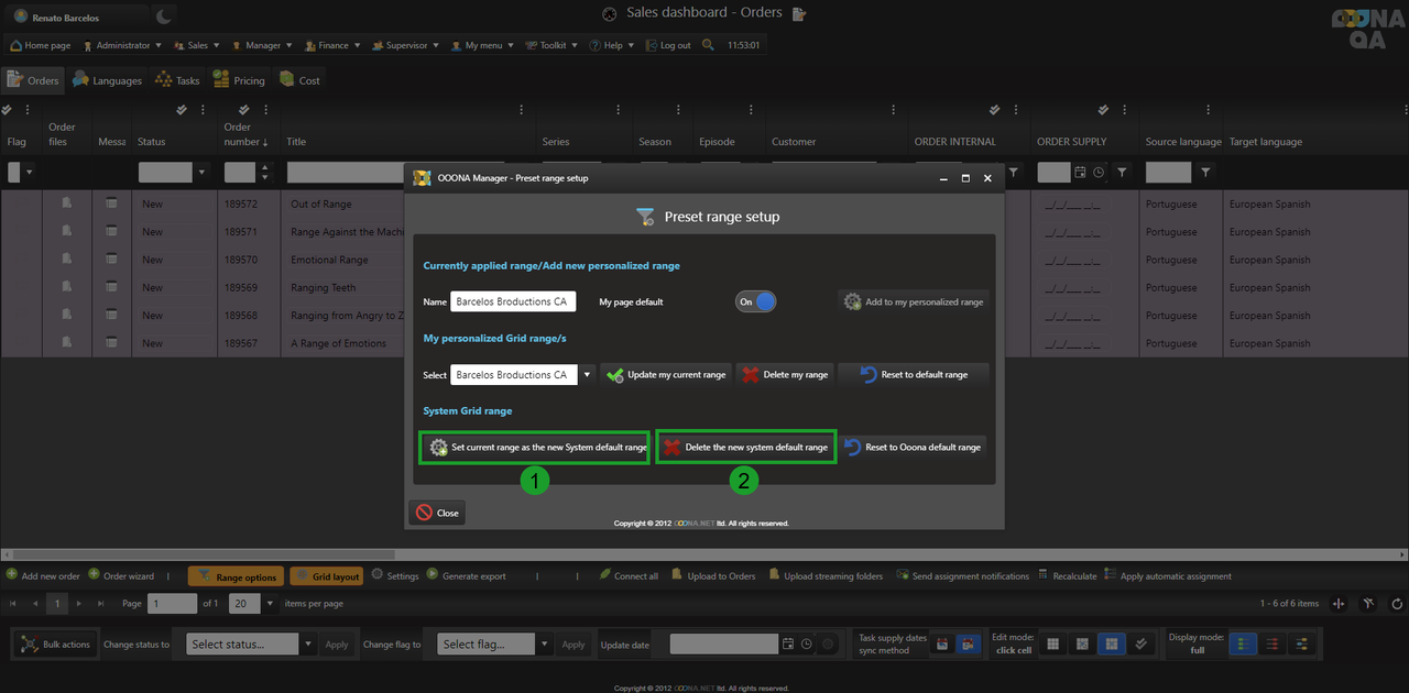Like other preset ranges, it can also be deleted, restoring the system default, using the “Delete the new system default range” option (2).