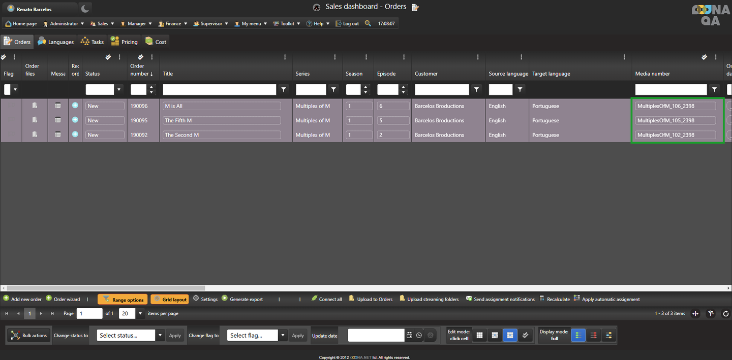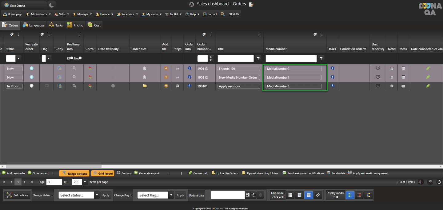 After adding the required media numbers, the list of orders containing them will be shown below (3).