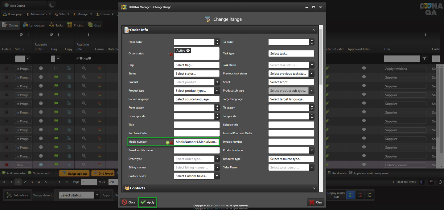 The “Media number” field will be updated with the selection and the range in the page will be applied accordingly, after clicking the “Apply” button.