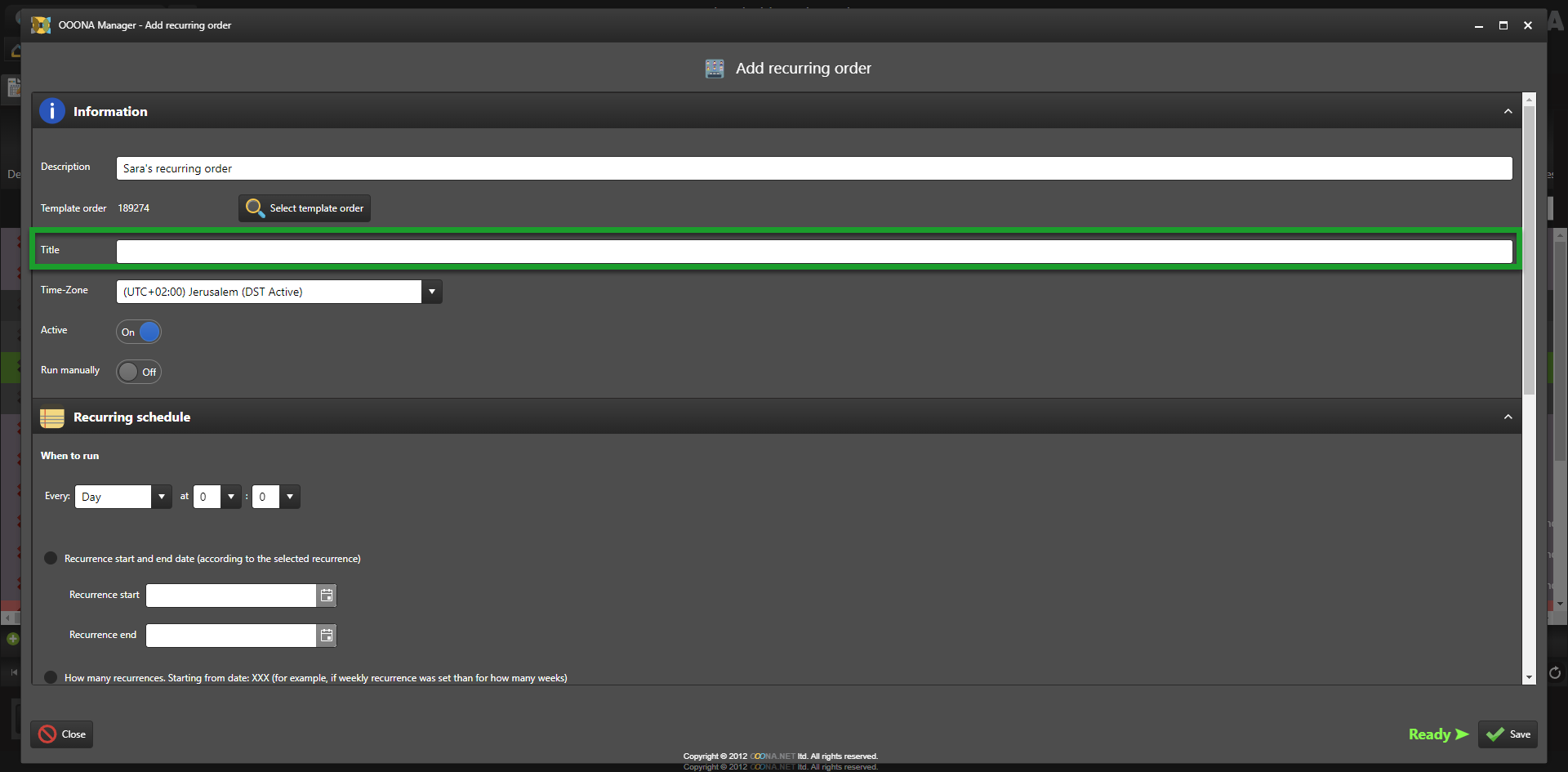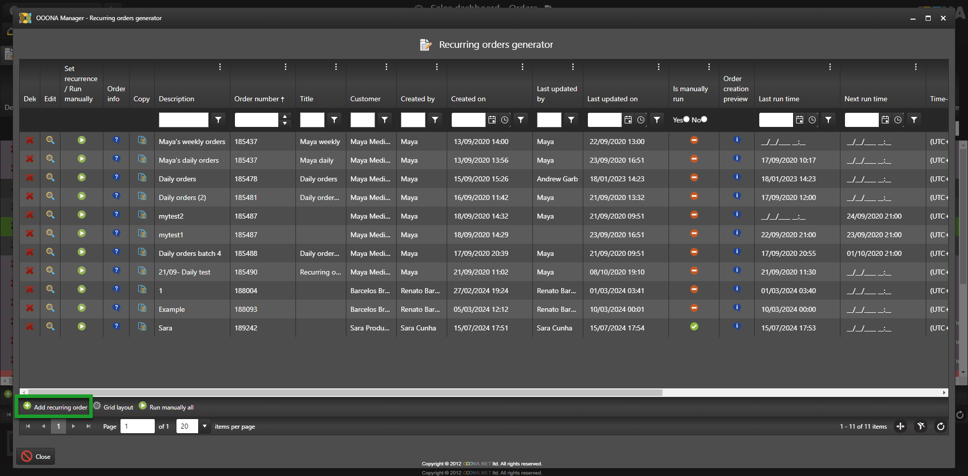The “Recurring orders generator” enables creating recurring orders according to preset conditions set by the user.