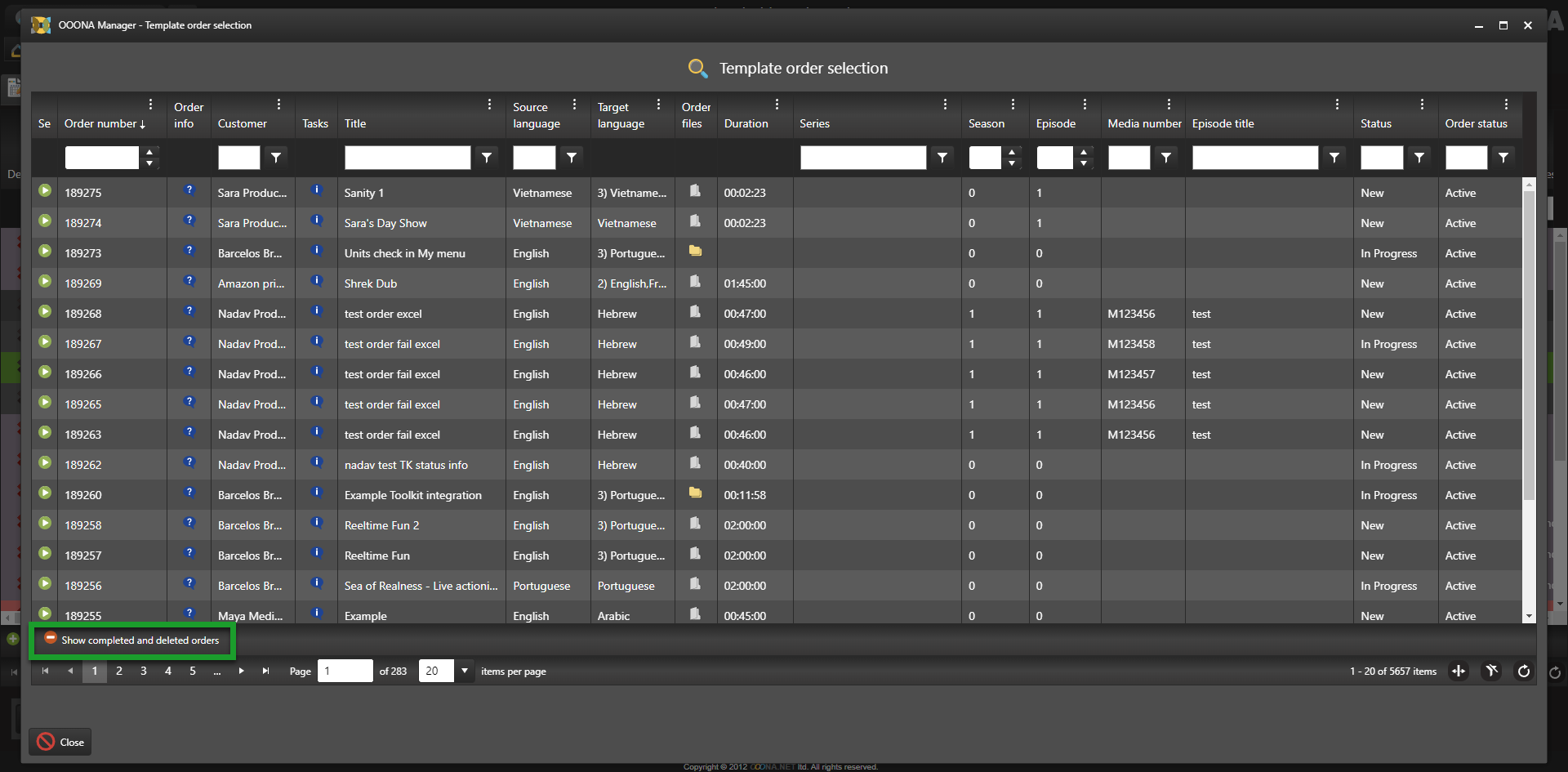 By default, the page only shows active orders, but it’s also possible to select completed and deleted orders by clicking the “Show completed and deleted orders” button at the bottom of the page.