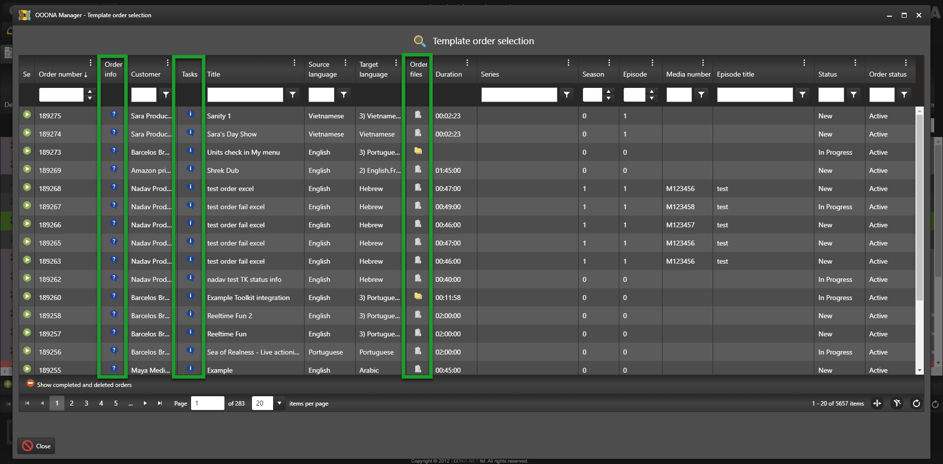 If unsure about which order to select, the Order info, Order tasks and Order files pages can be accessed from here as well.