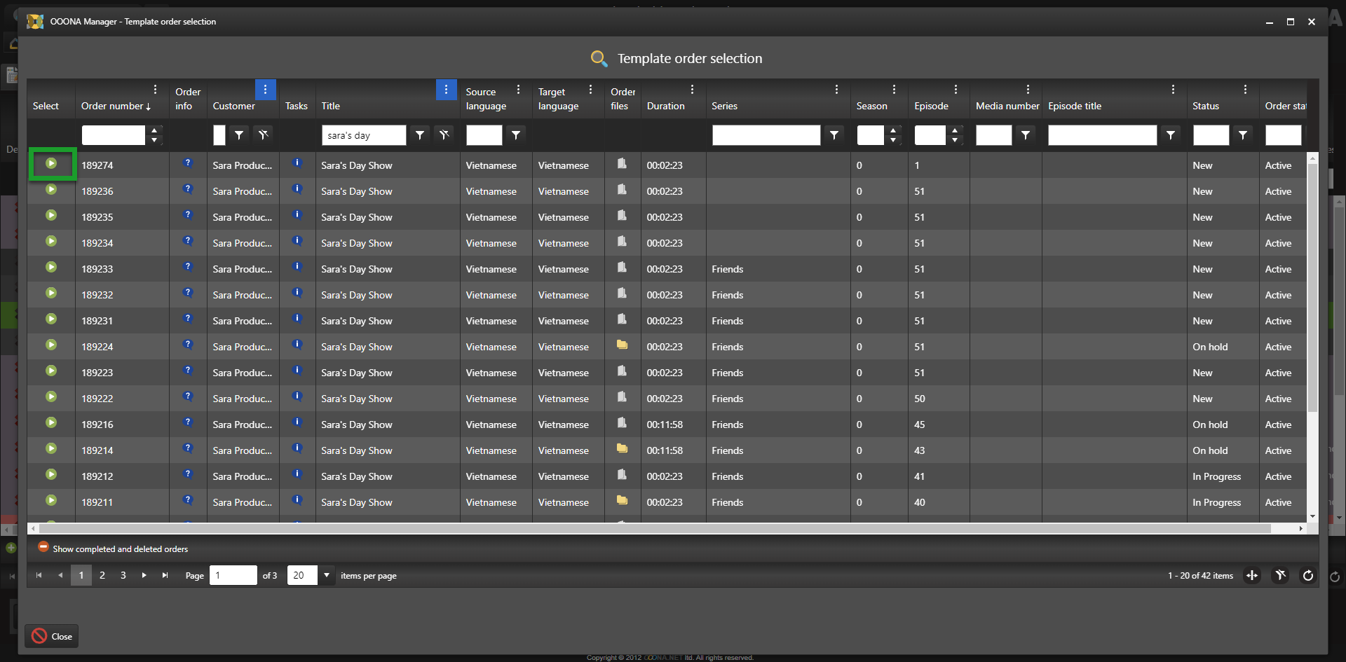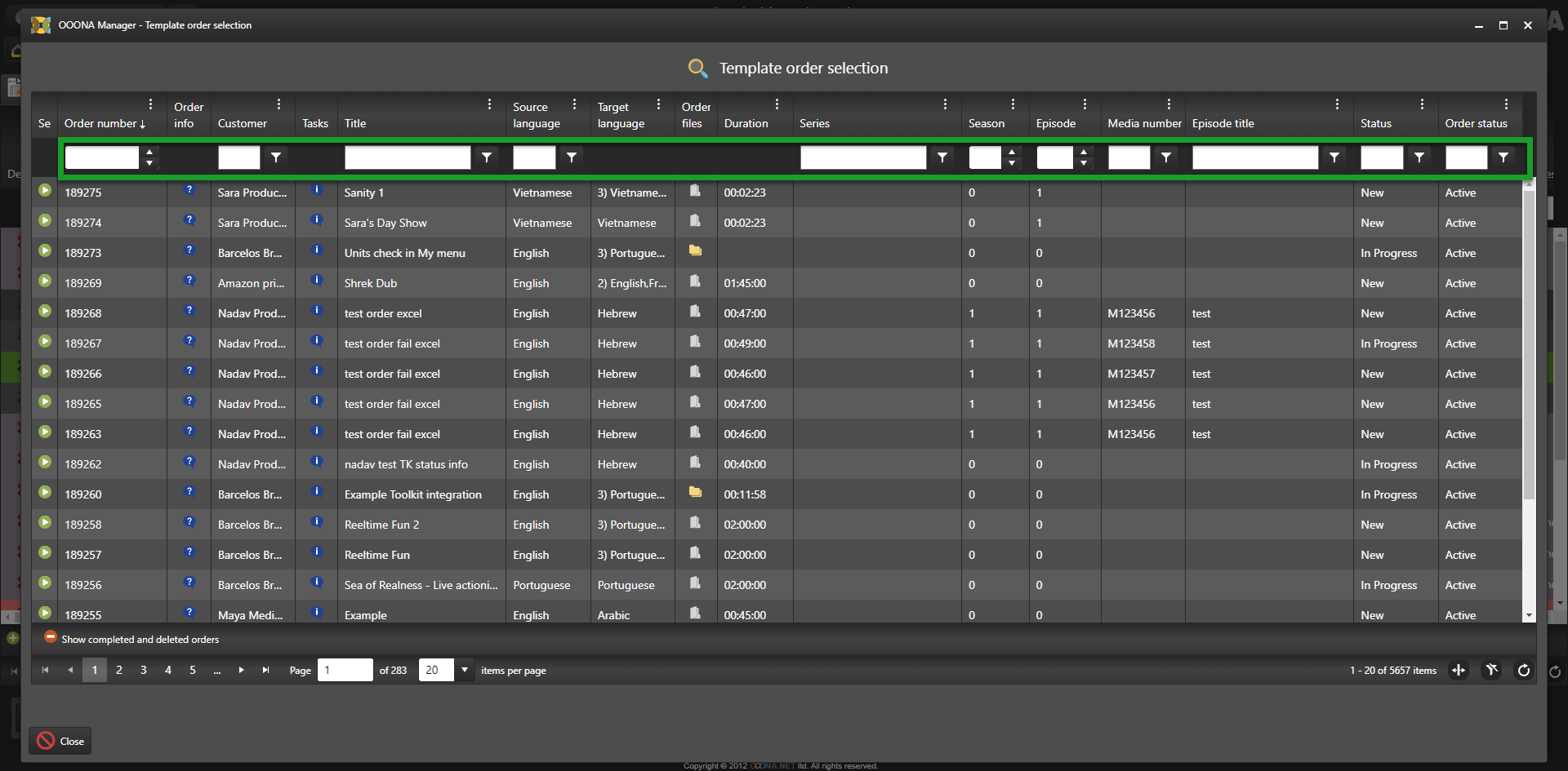 If looking for a specific order, you can also filter the list by Order number, Customer or Title, for example.