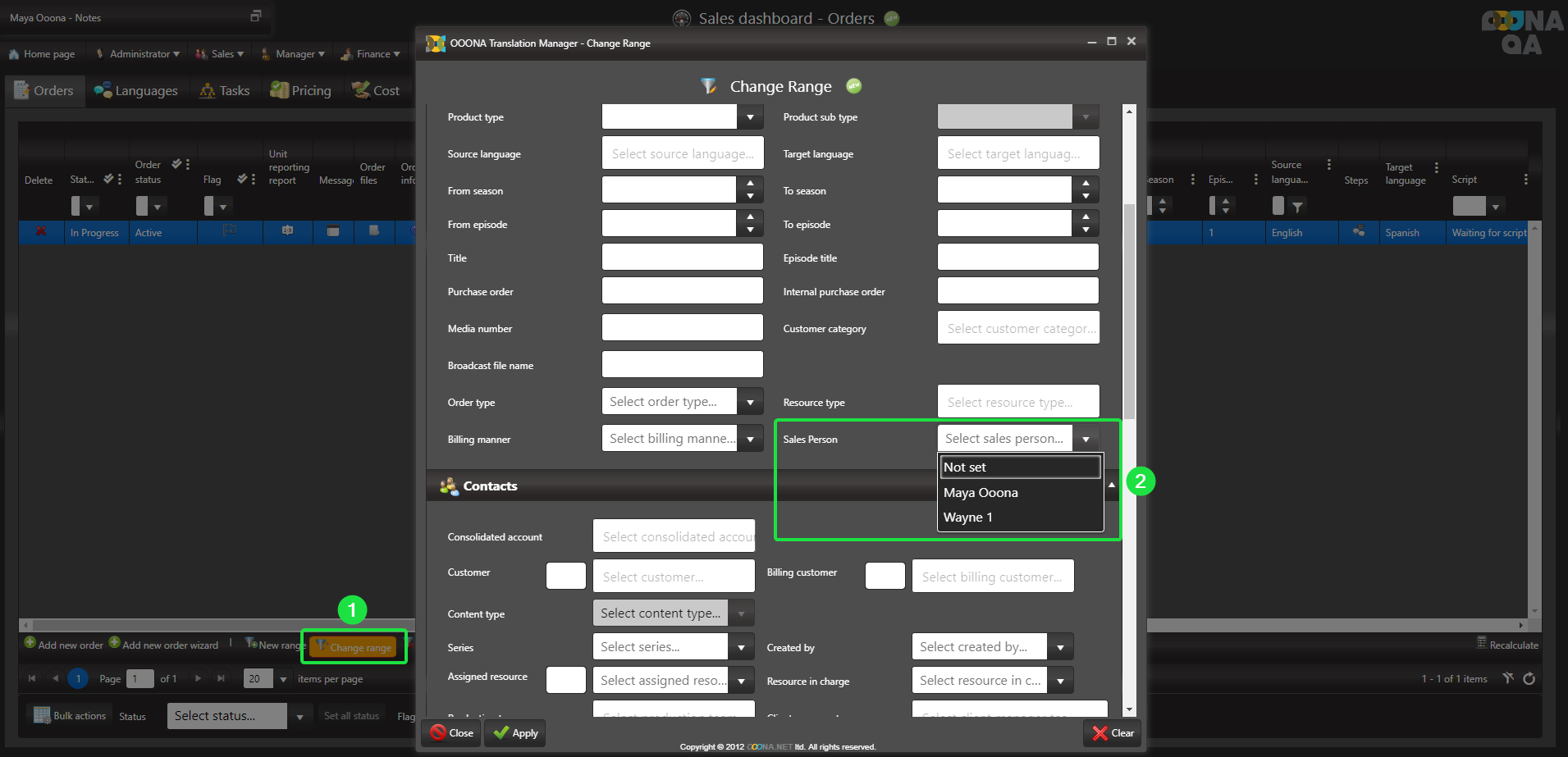 The Salesperson field is filterable from the range allowing you to easily locate orders associated with a specific salesperson