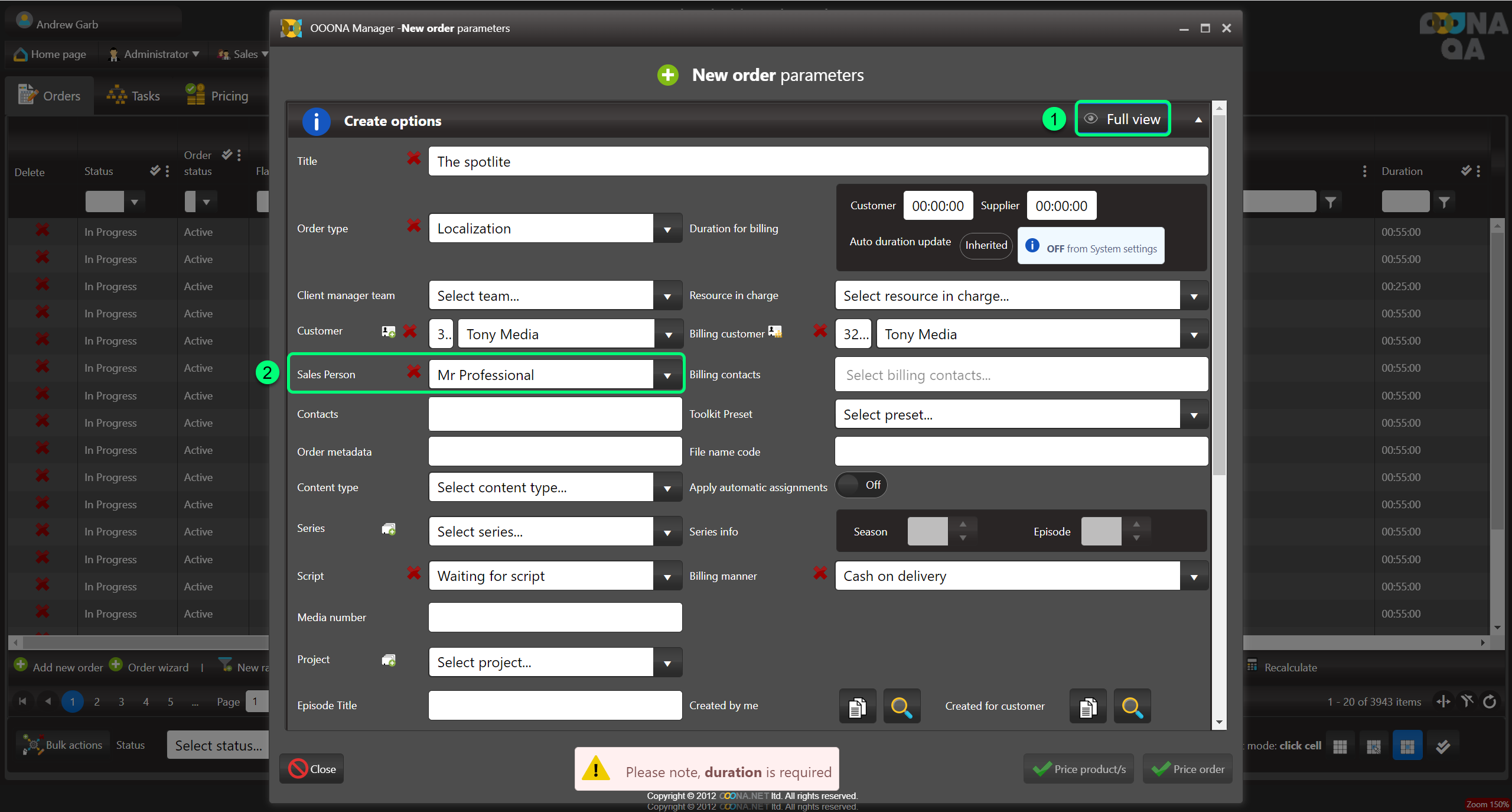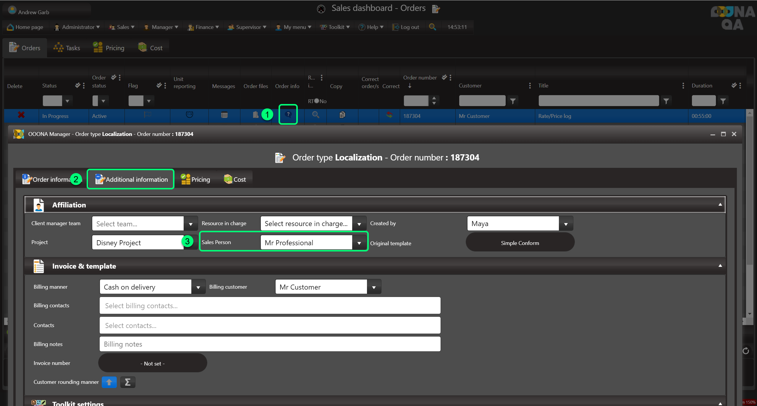 Select the required “Sales person” from the list (fig 2)