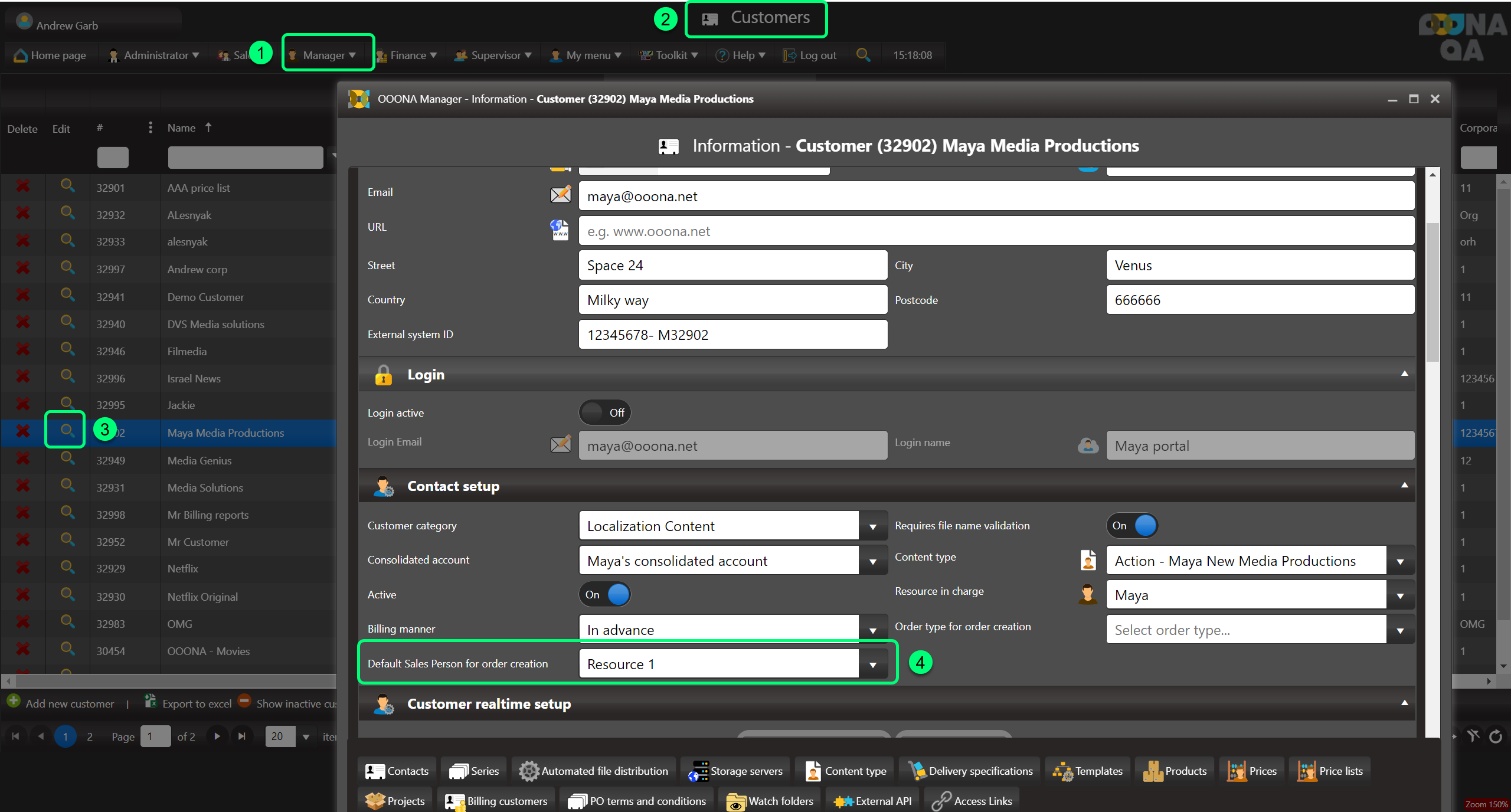 Navigate to Manager > Rolodex tables > Customers > Magnifying glass (fig 1-3)