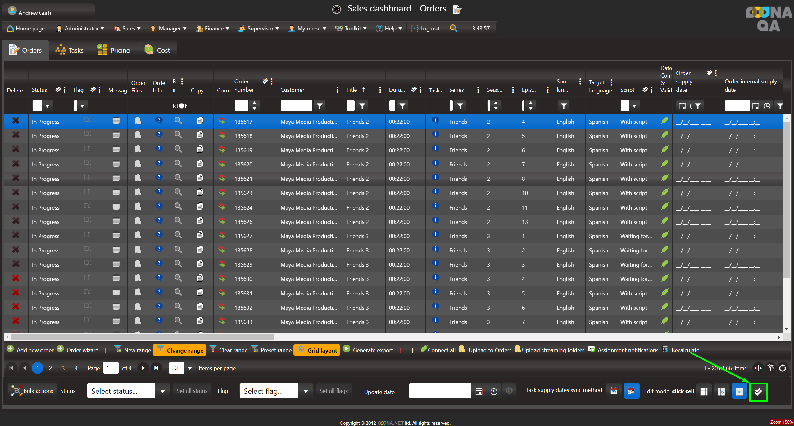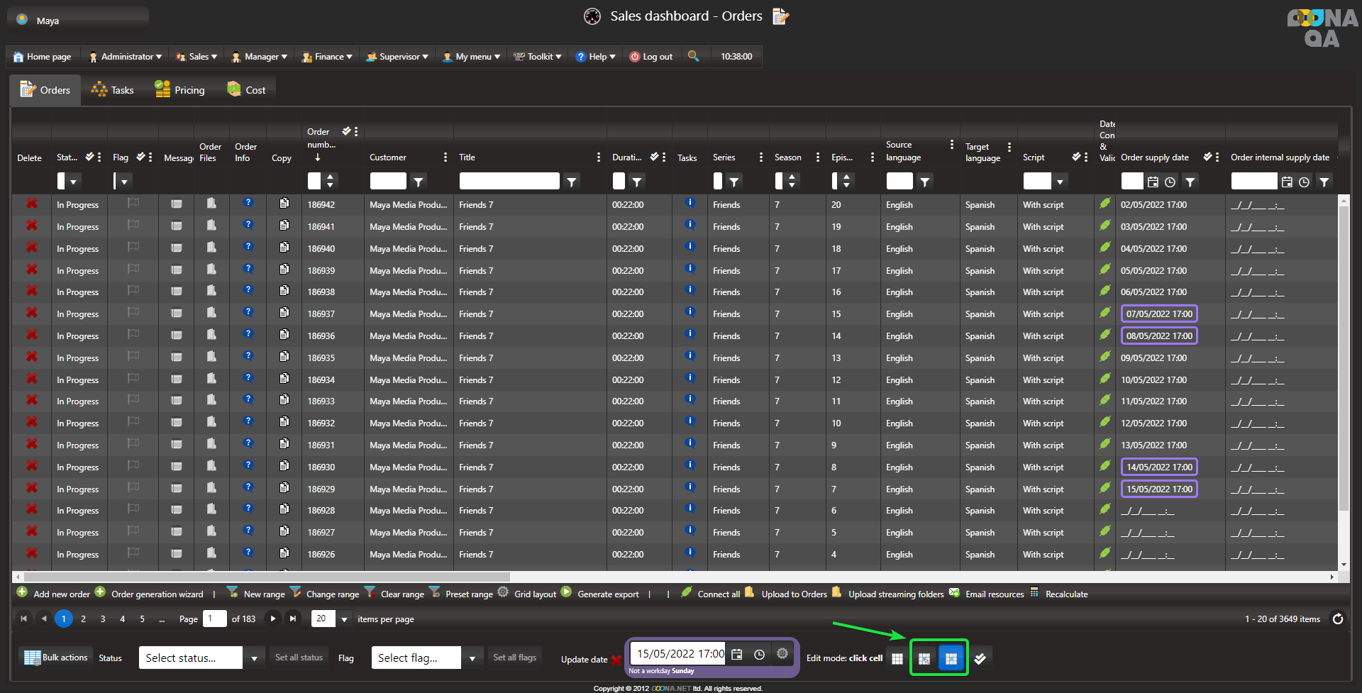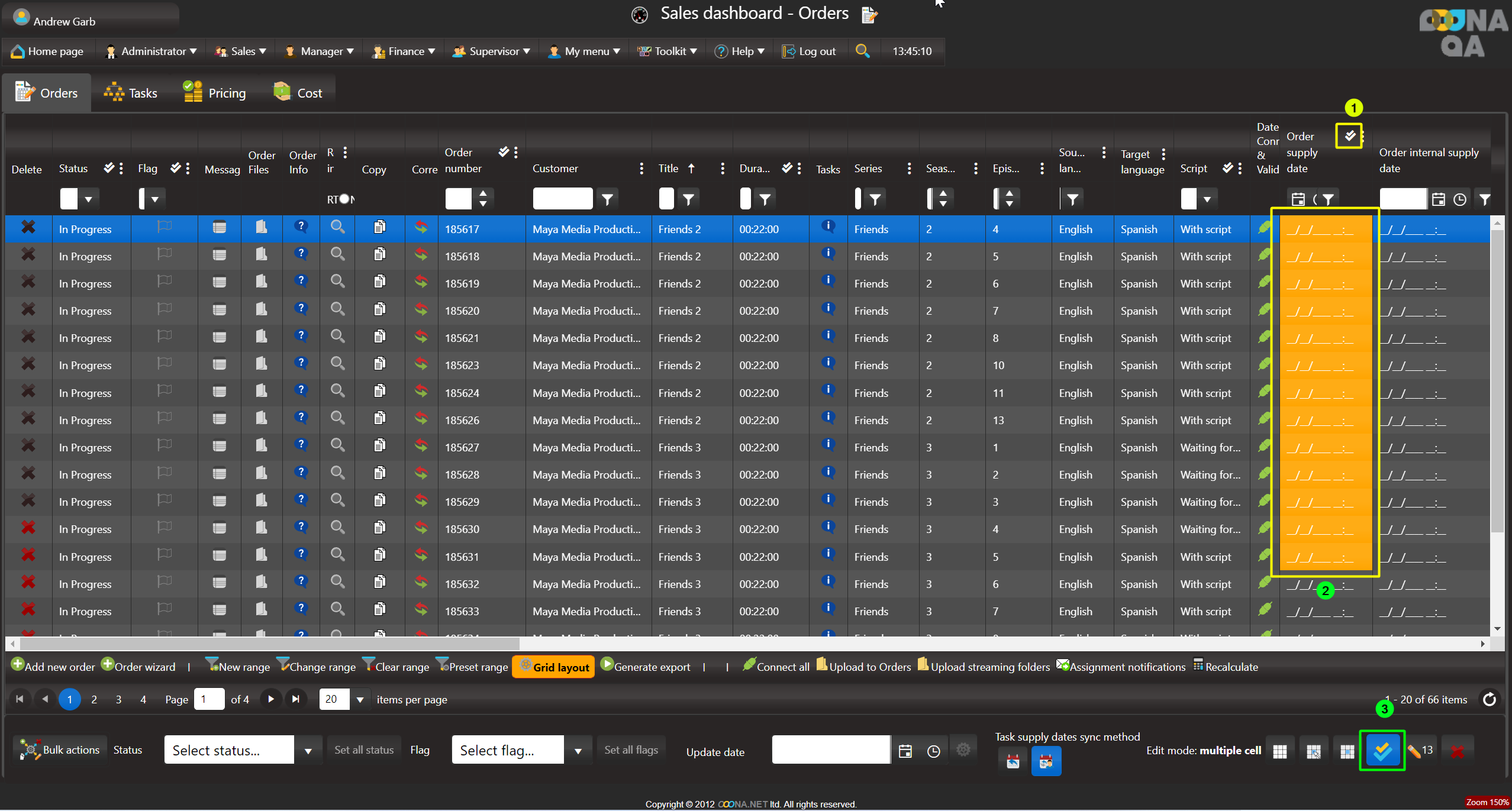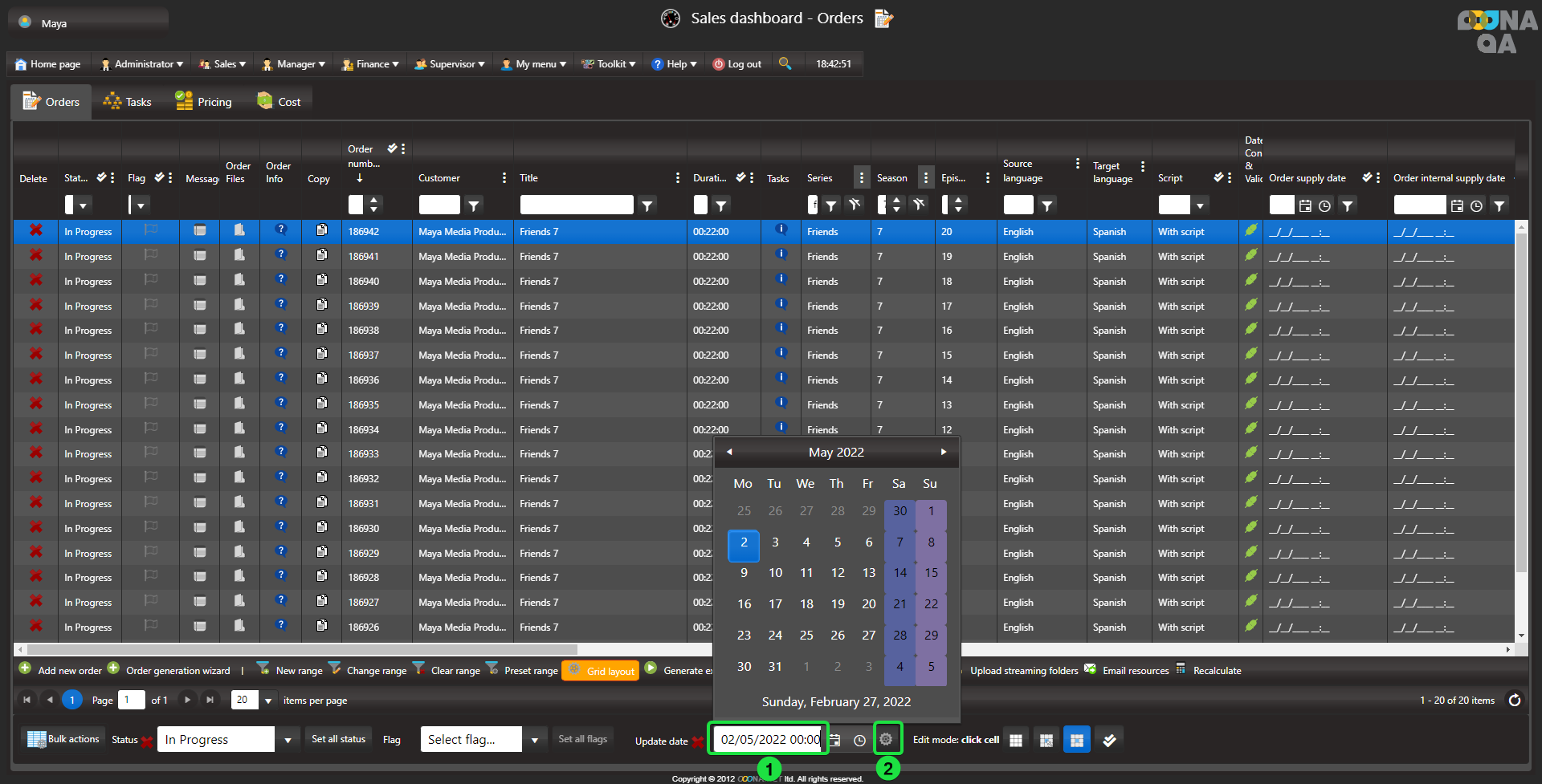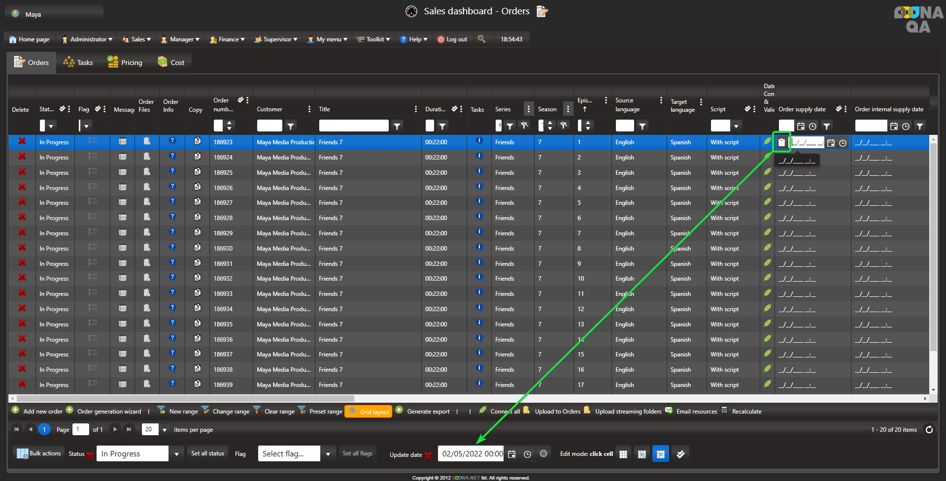 Enter the delivery date of the first order in the “Update date” field (fig 1)