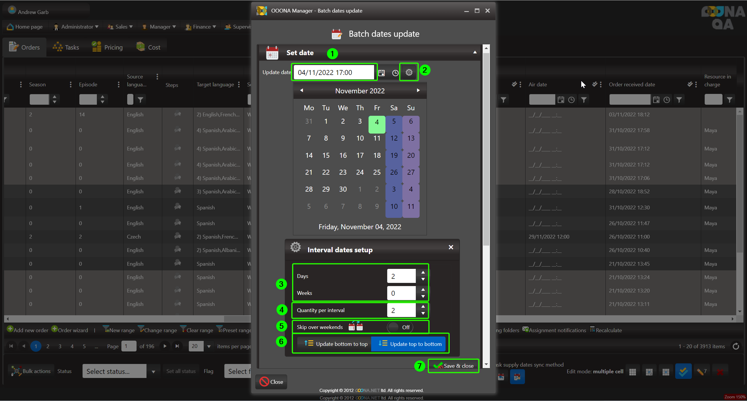 The purpose of this tool is to facilitate entering interval Order or Task dates into multiple orders.
