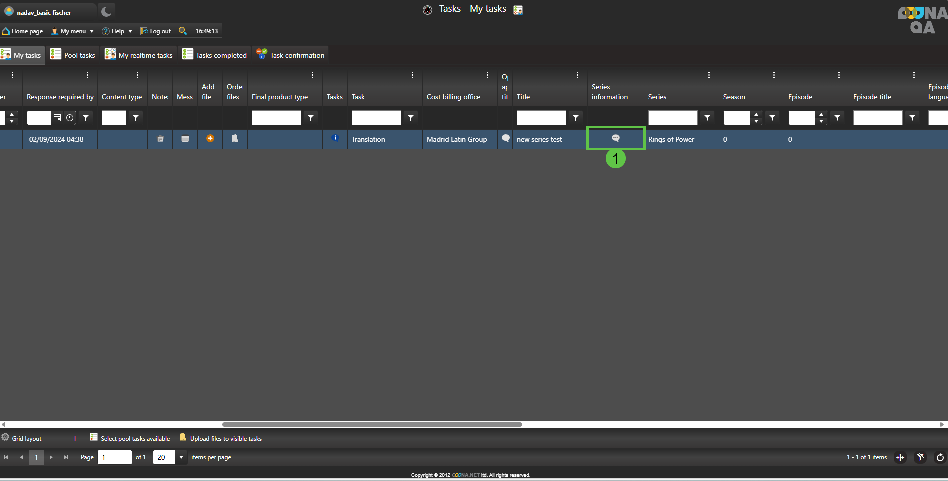 In My tasks/Pool Tasks/My Realtime tasks pages click the Series Information button.