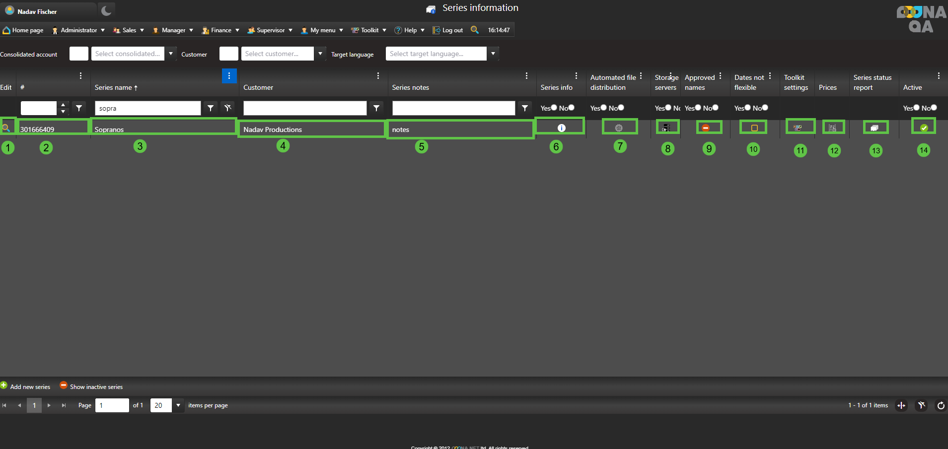 2. Manager>Rolodex tables>customer>edit (magnifying glass)>Series