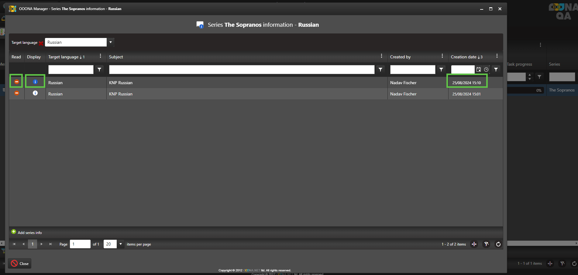 Inside the Series info pop-up, choose the target language you wish to create the series information for.
